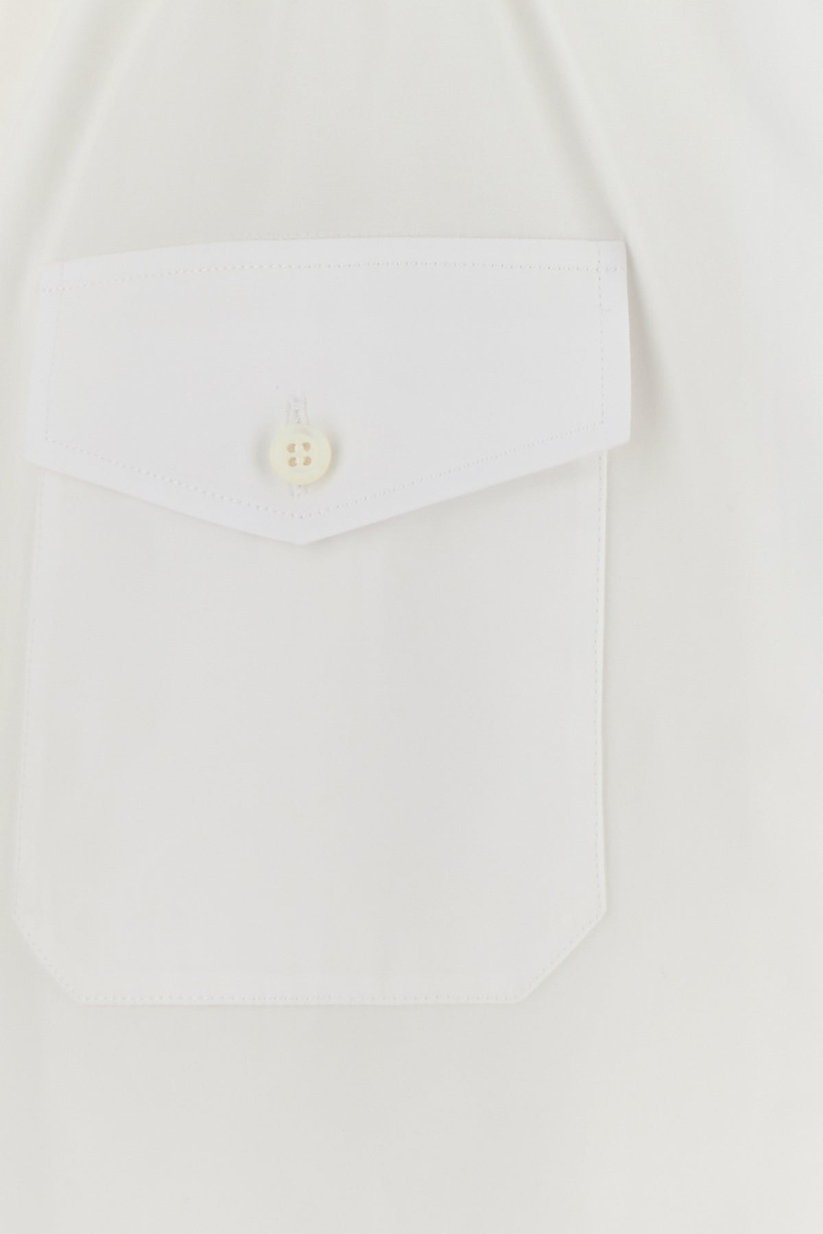 Abito chemisier realizzato in popeline di puro cotone arricchito da iconico triangolo metallico logato sul retro.