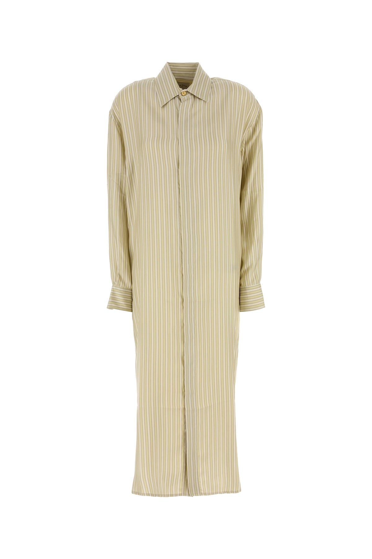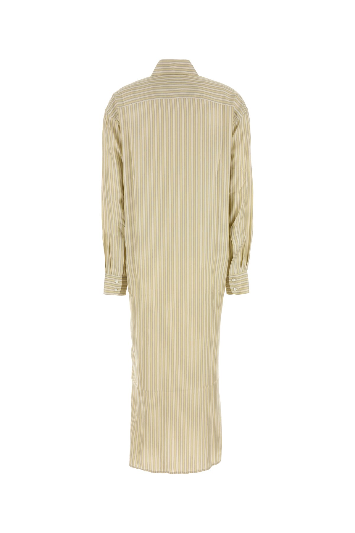 Abito chemisier realizzato in pura seta caratterizzato da ricamo a righe su tutta la superficie.