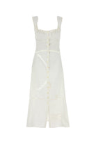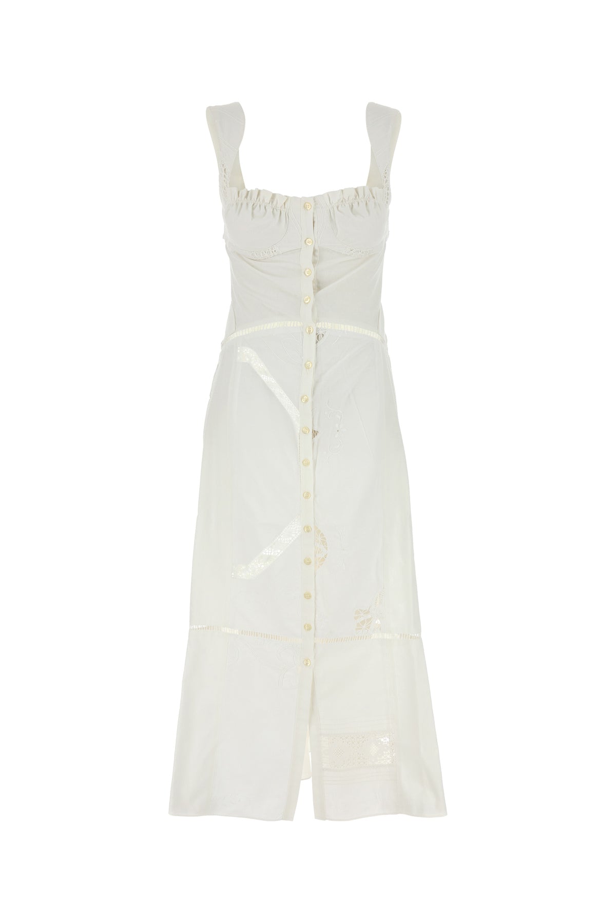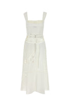 Abito midi realizzato in puro cotone caratterizzato da particolari ricami tonali sulla parte frontale e sul retro.