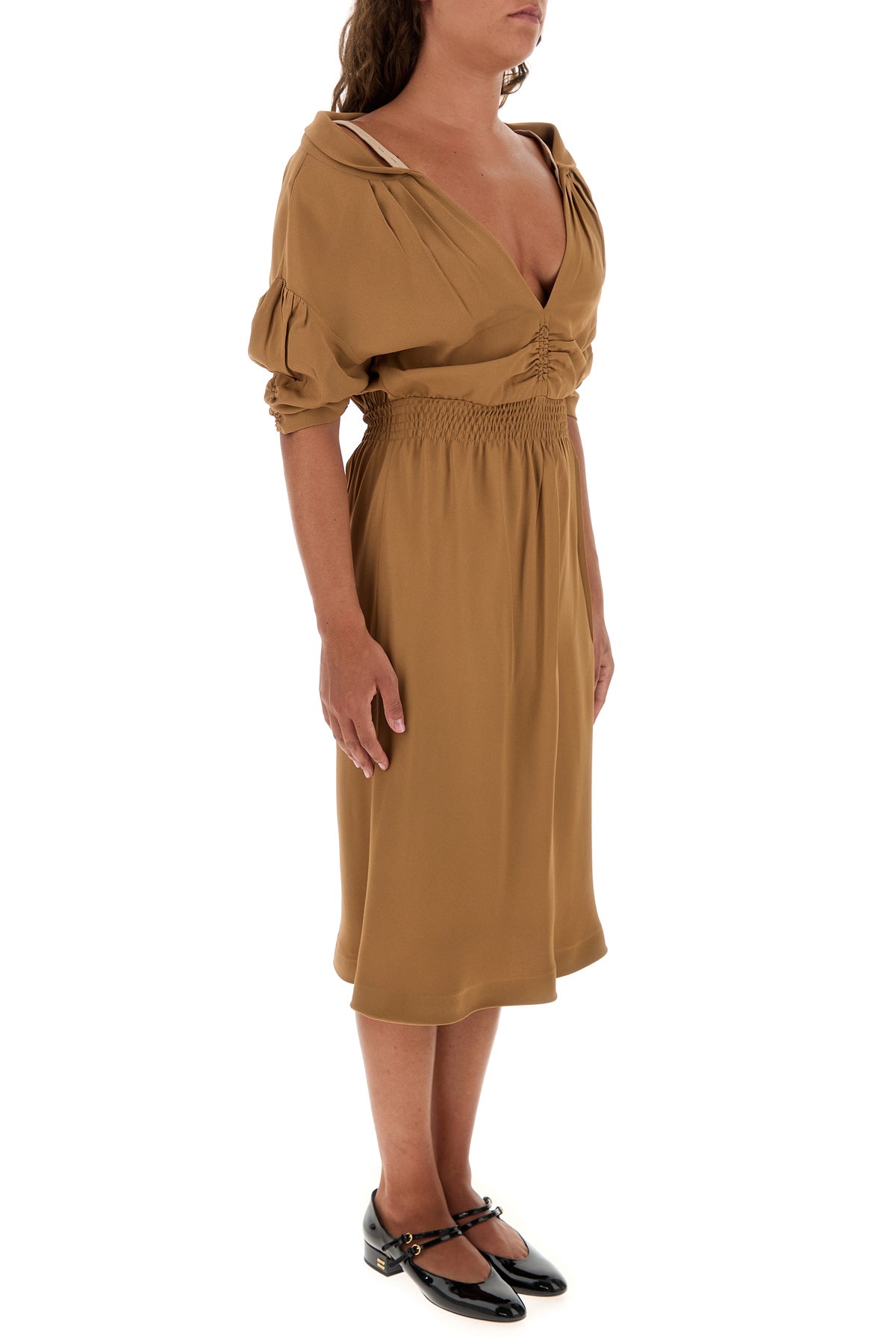 Abito realizzato in crepe caratterizzato da vita elastica.