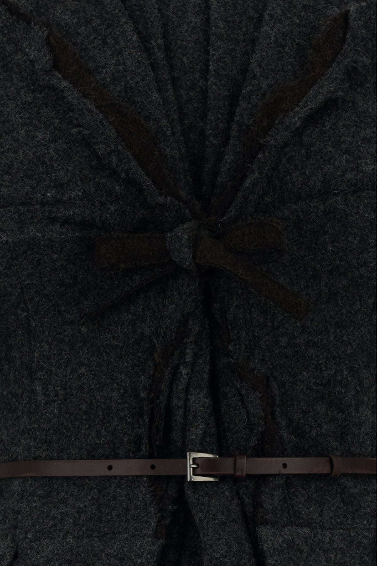 Abito realizzato in flanella di pura lana vergine arricchito da fiocco decorativo sulla parte frontale.