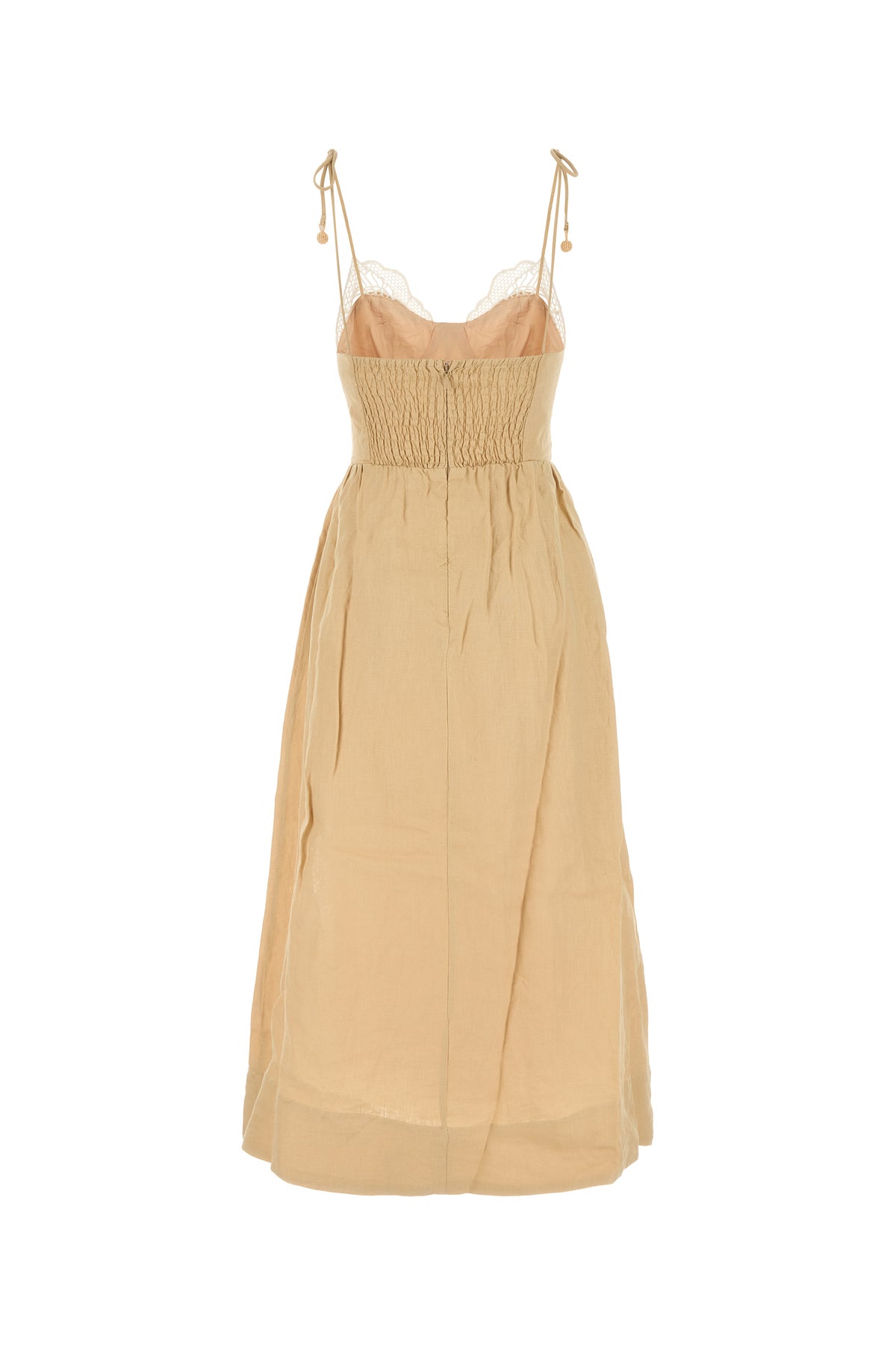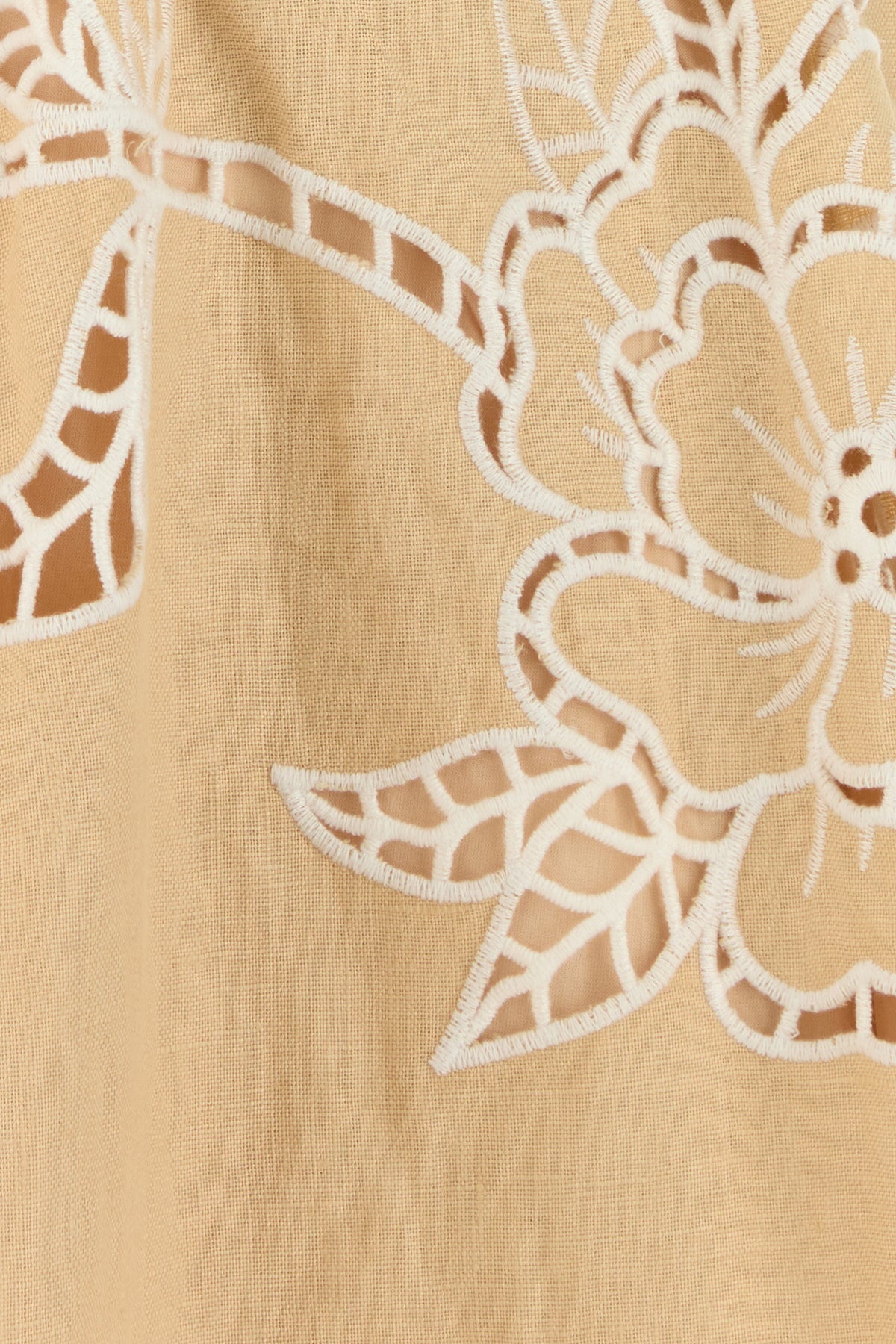 Abito realizzato in puro lino caratterizzato da particolare ricamo a contrasto sulla parte frontale.