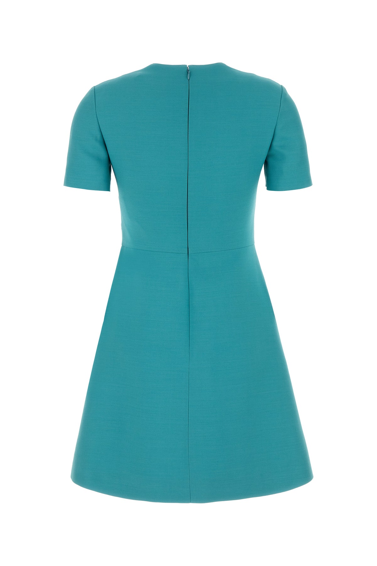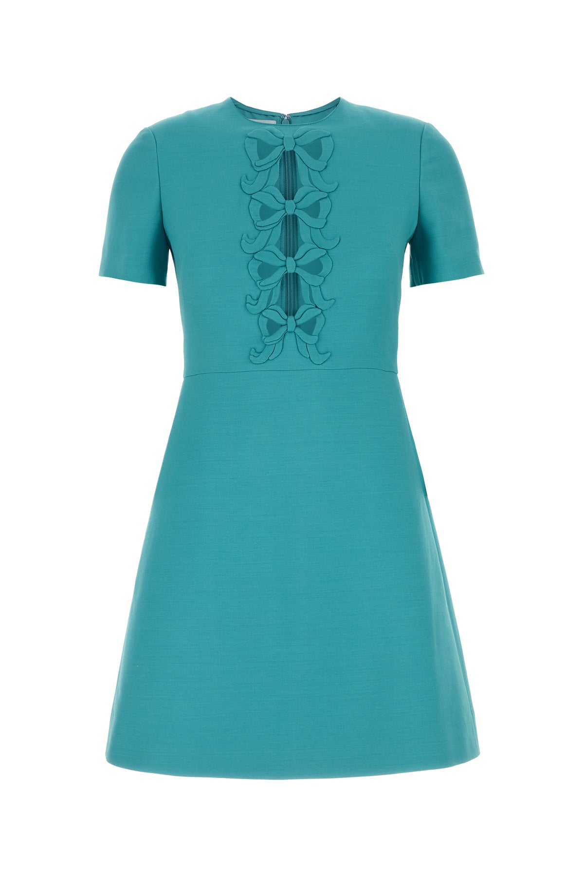 Abito realizzato in lana vergine e seta arricchito da fiocchi decorativi sulla parte frontale.