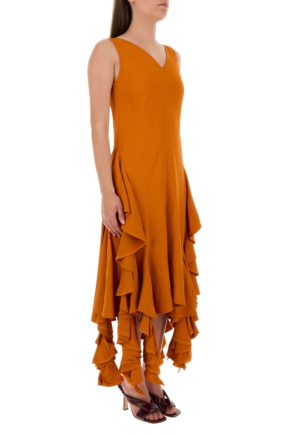 Abito realizzato in viscosa stretch caratterizzato da balze sul fondo.