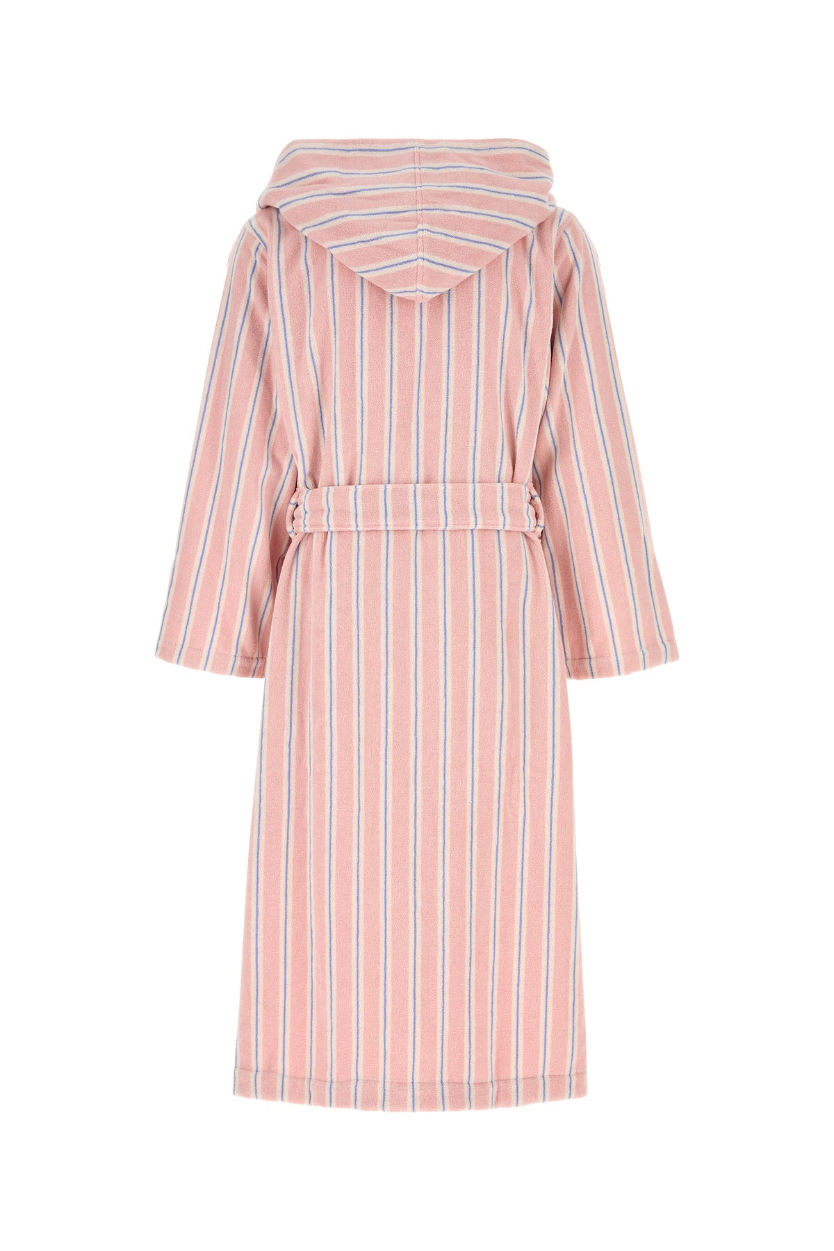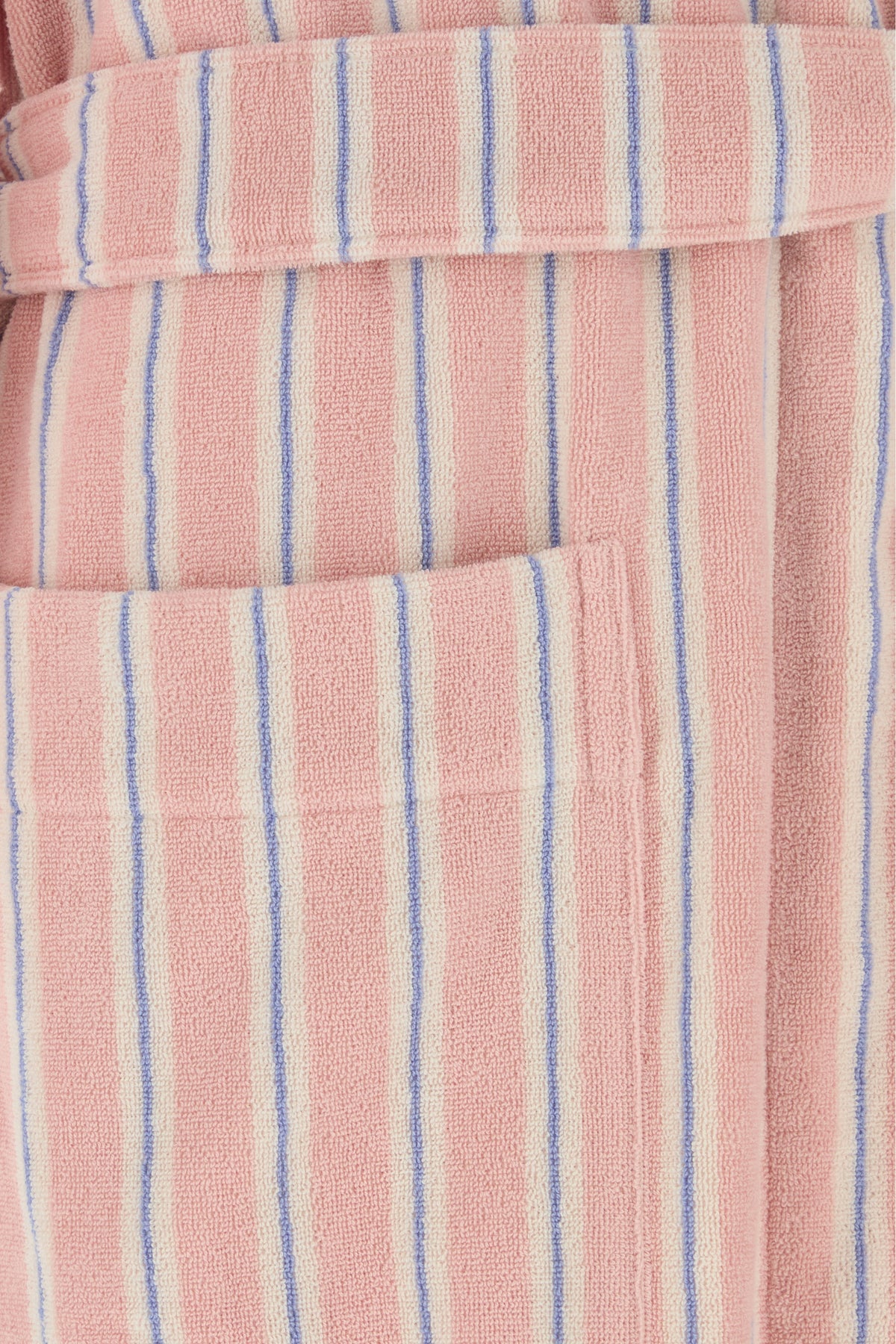 Accappatoio realizzato in spugna di puro cotone biologico caratterizzato da ricamo a righe su tutta la superficie arricchito da etichetta logata sul lato.