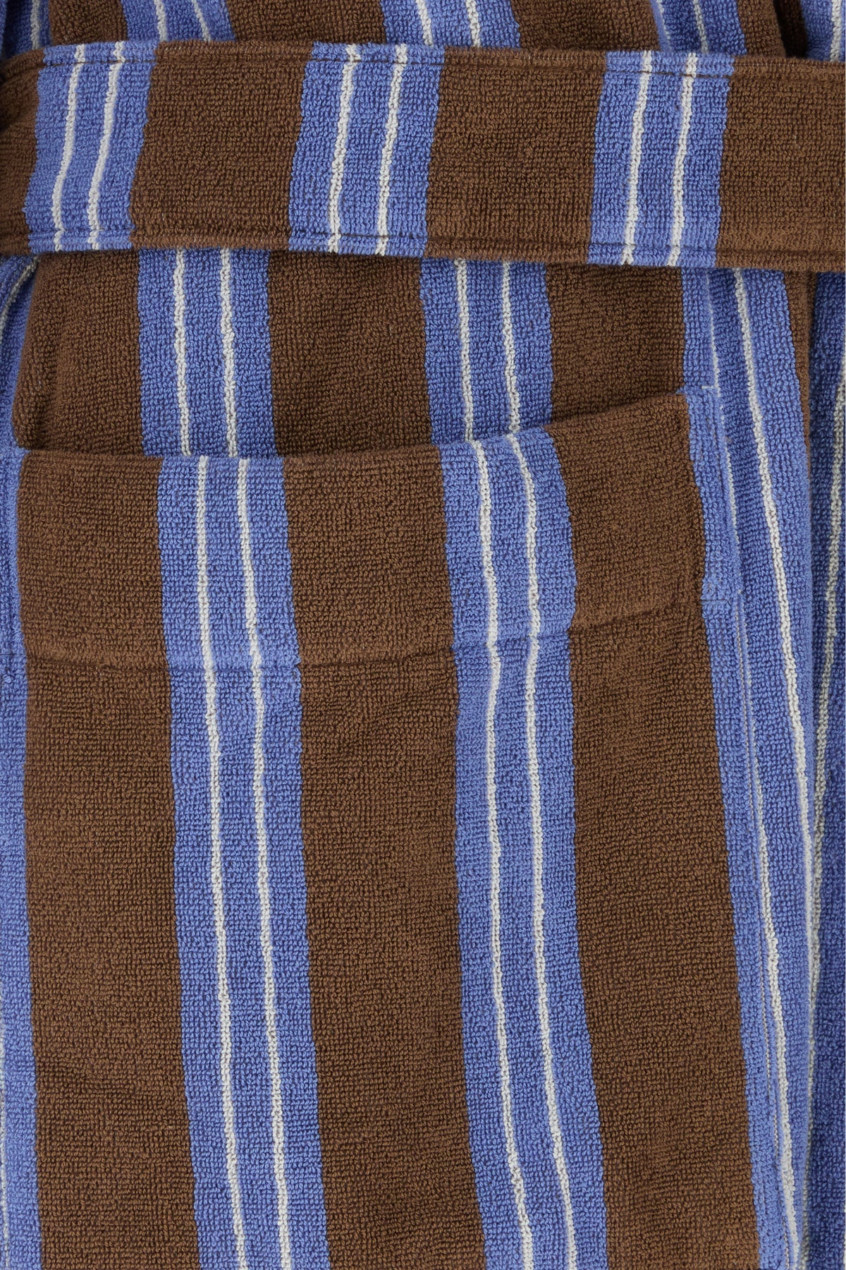 Accappatoio realizzato in spugna di puro cotone biologico caratterizzato da ricamo a righe su tutta la superficie arricchito da etichetta logata sul lato.