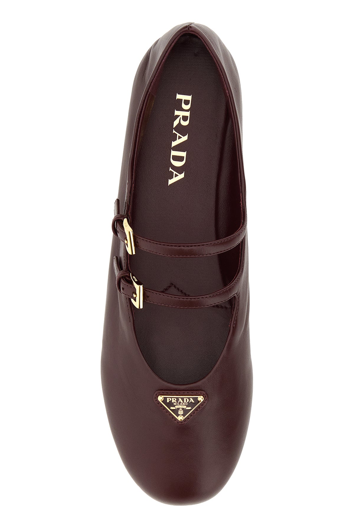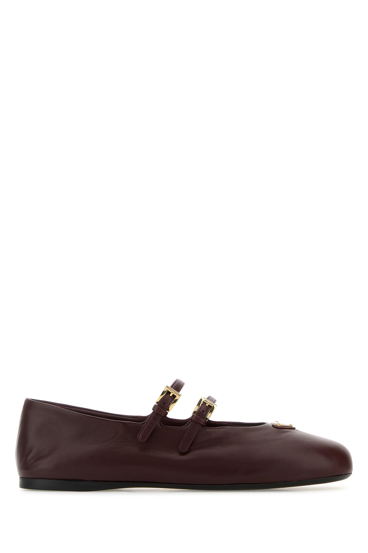 Ballerine realizzate in nappa arricchite da iconico triangolo metallico logato sul collo del piede.