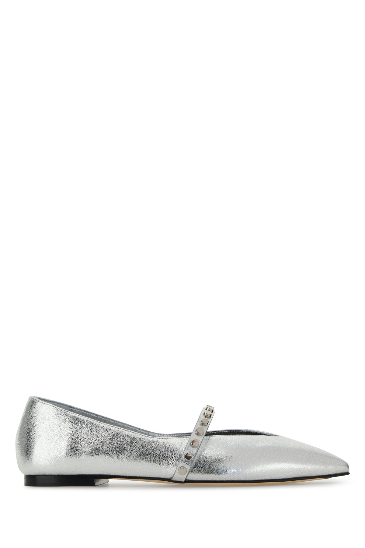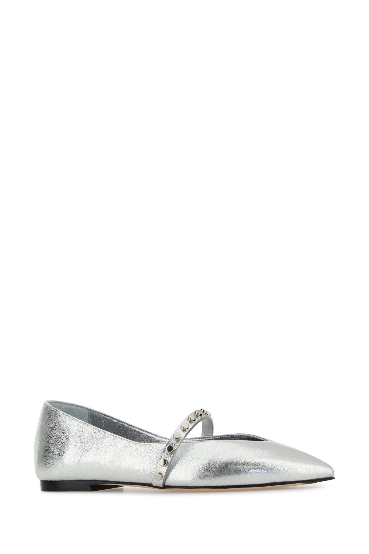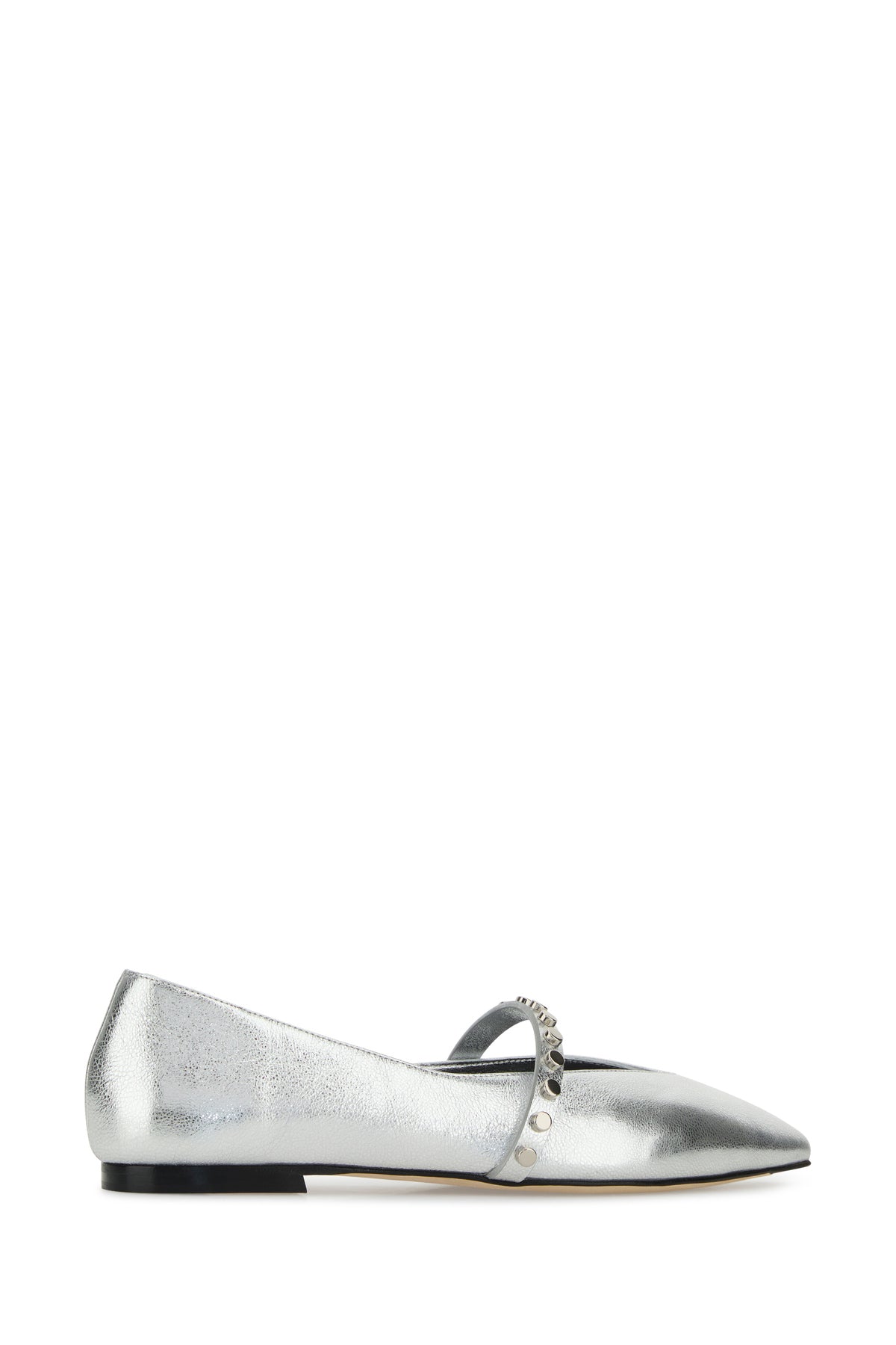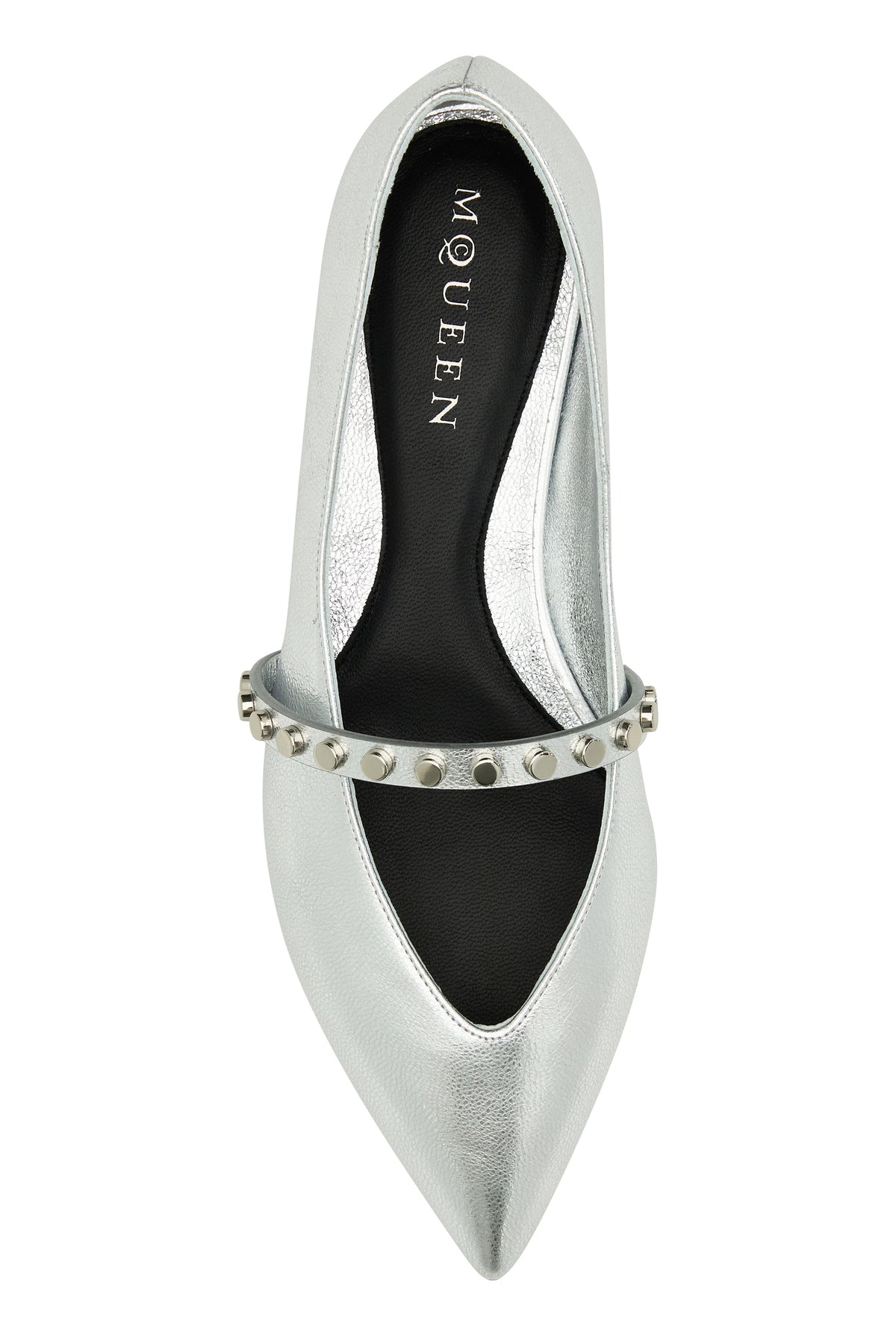 Ballerine realizzate in pelle martellata laminata arricchite da borchie metalliche sul collo del piede.