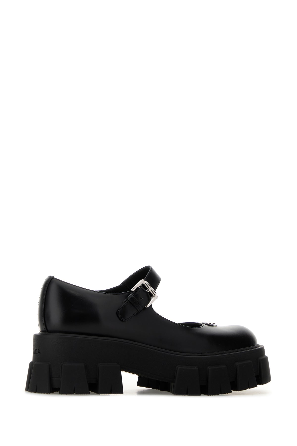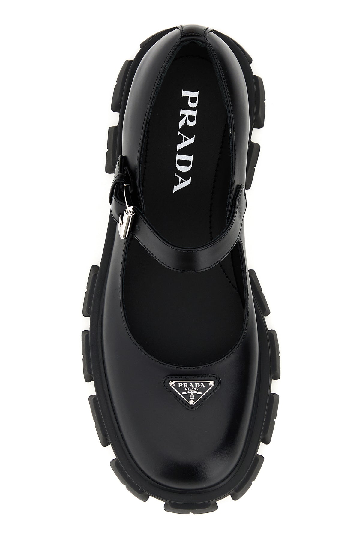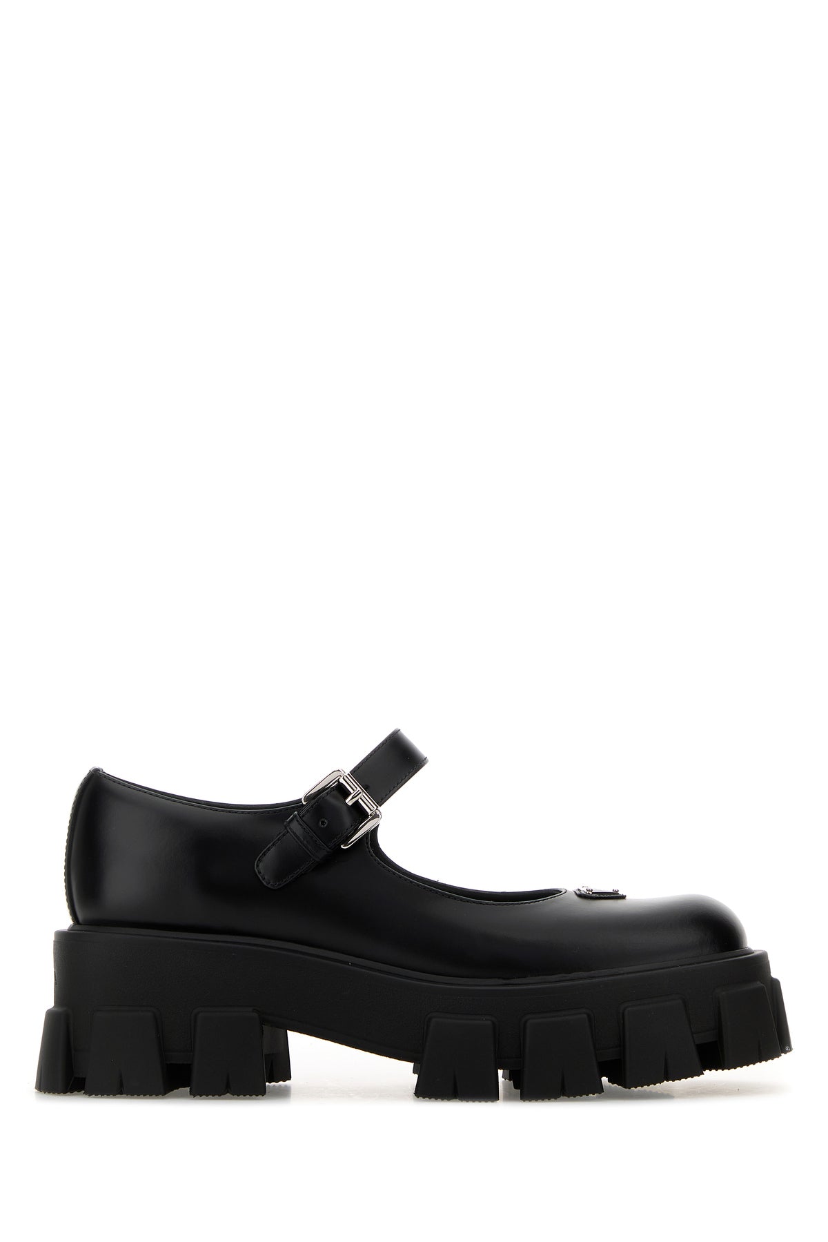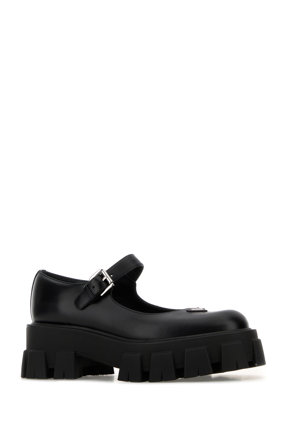Ballerine realizzate in pelle liscia arricchite da iconico triangolo metallico logato sul collo del piede.