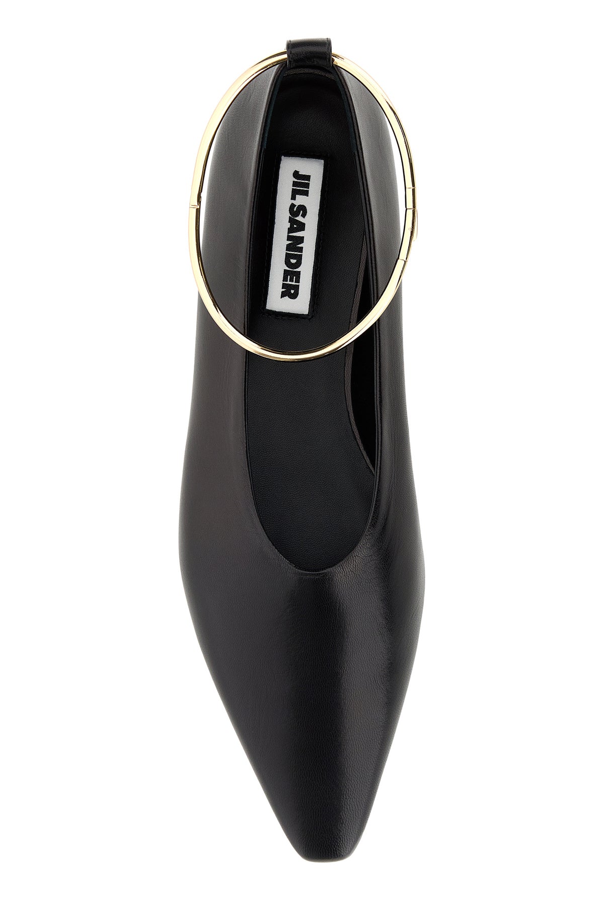 Ballerine realizzate in pelle arricchite da dettaglio metallico amovibile sulla caviglia.