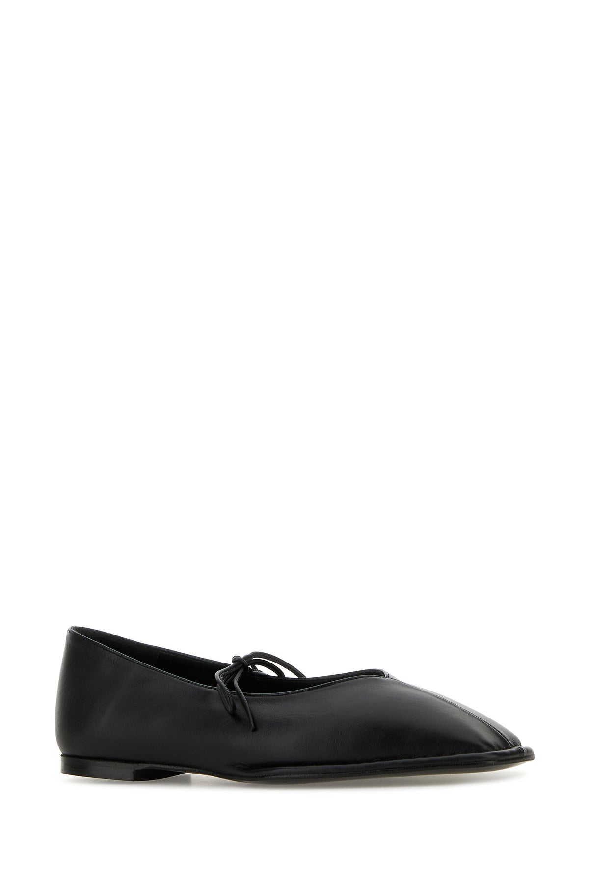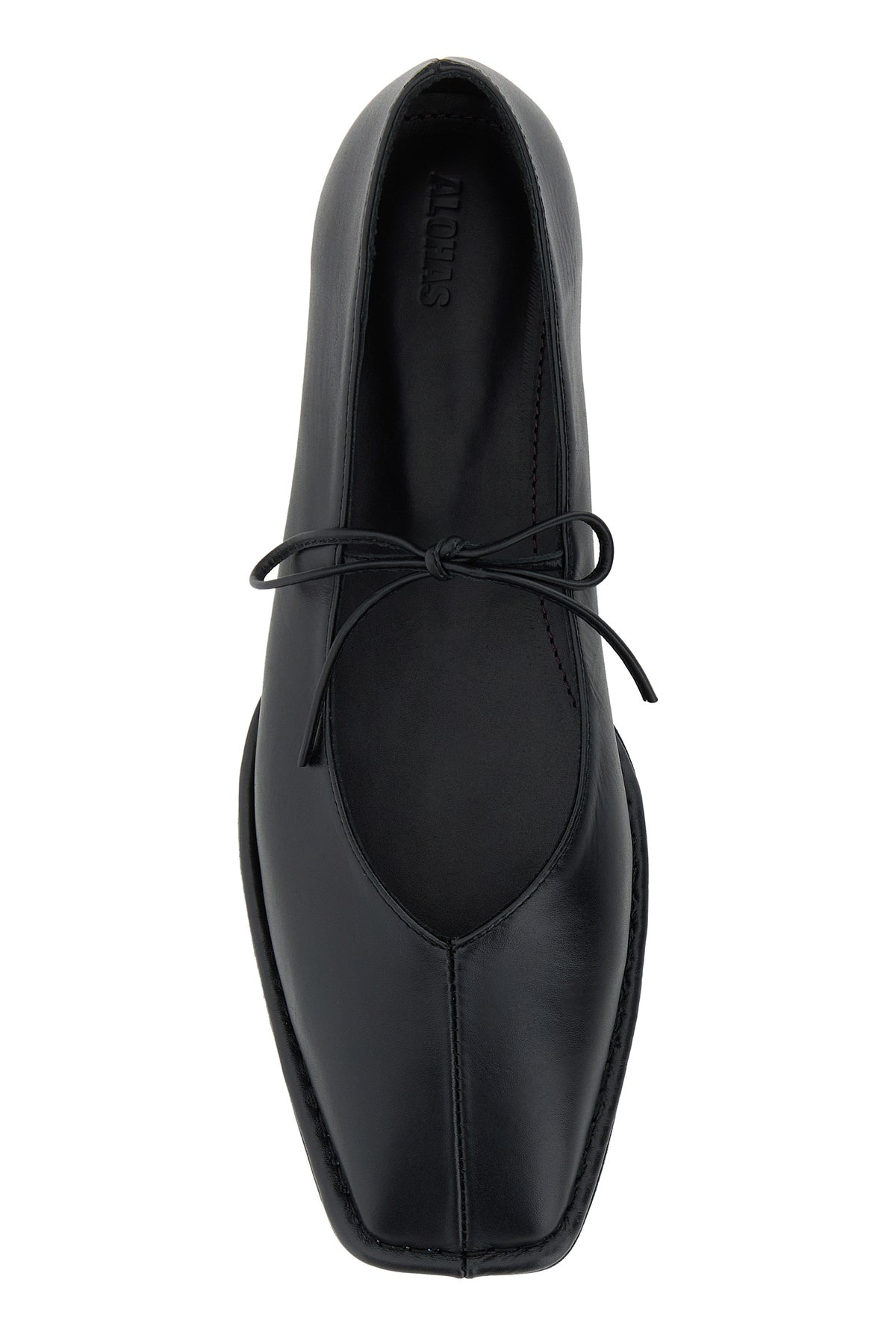 Ballerine realizzate in pelle bovina leggermente martellata caratterizzata da lacci da annodare sul collo del piede.