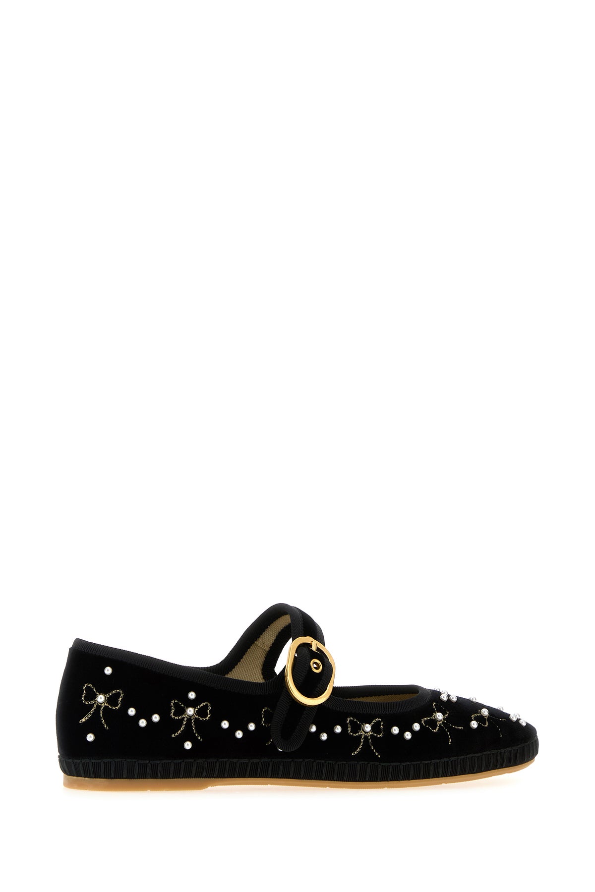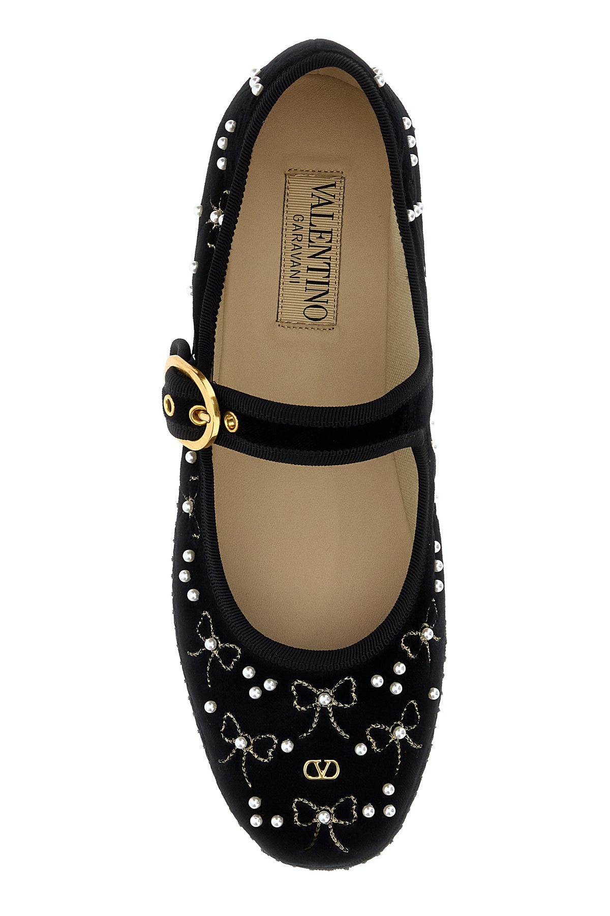 Ballerine realizzate in velluto caratterizzate da particolari ricami su tutta la superficie arricchiti da dettaglio metallico VLogo Signature sulla punta tonda.
