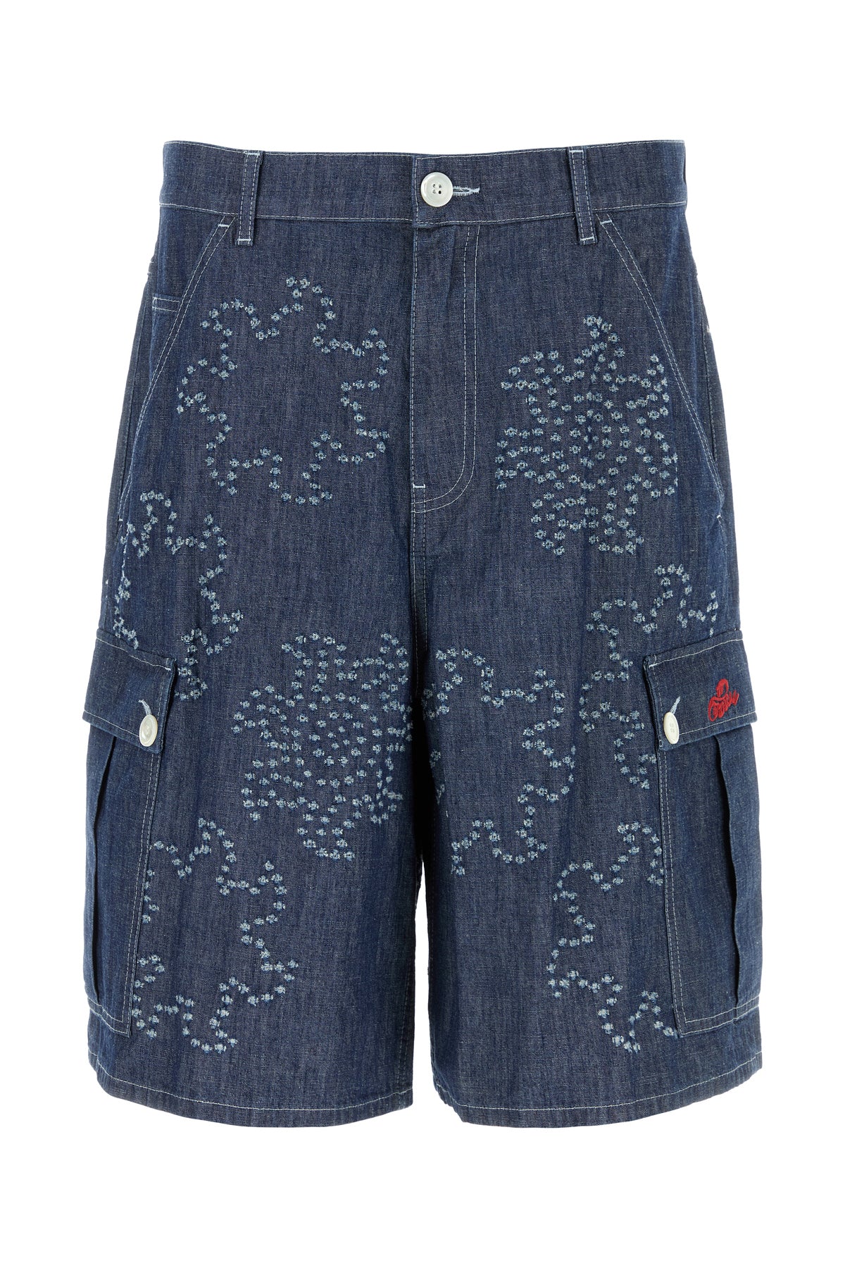 Bermuda realizzati in denim di puro cotone ad effetto sdrucito caratterizzato da logo ricamato sul lato.