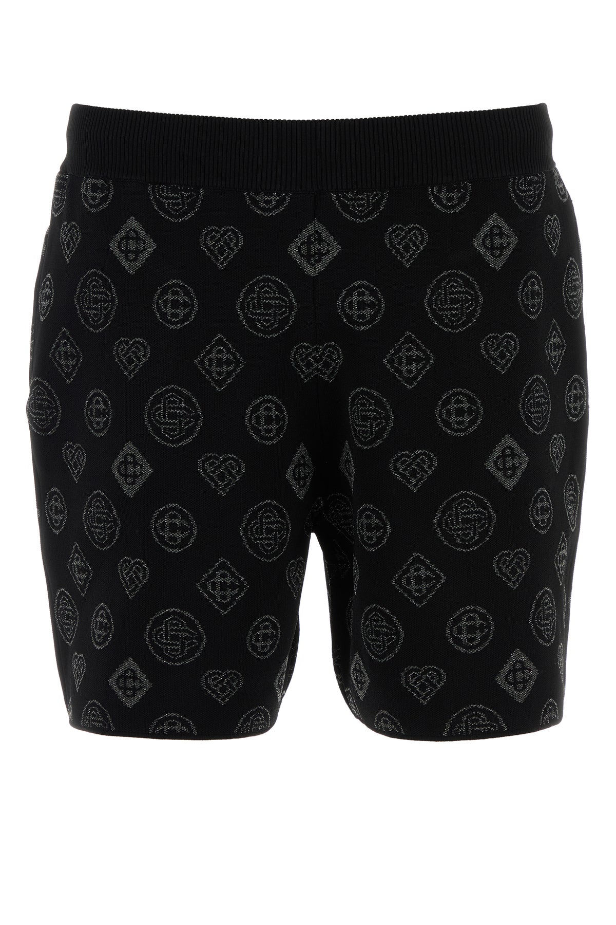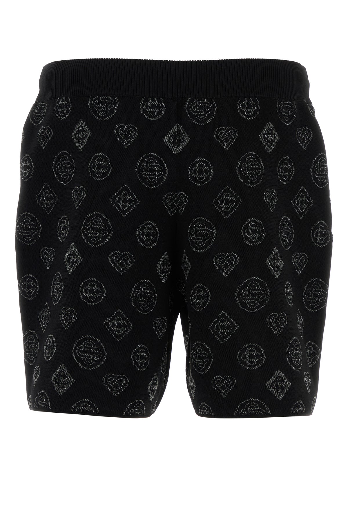 Bermuda realizzati in jacquard stretch con fili in lurex caratterizzati ad logo ricamato su tutta la superficie.