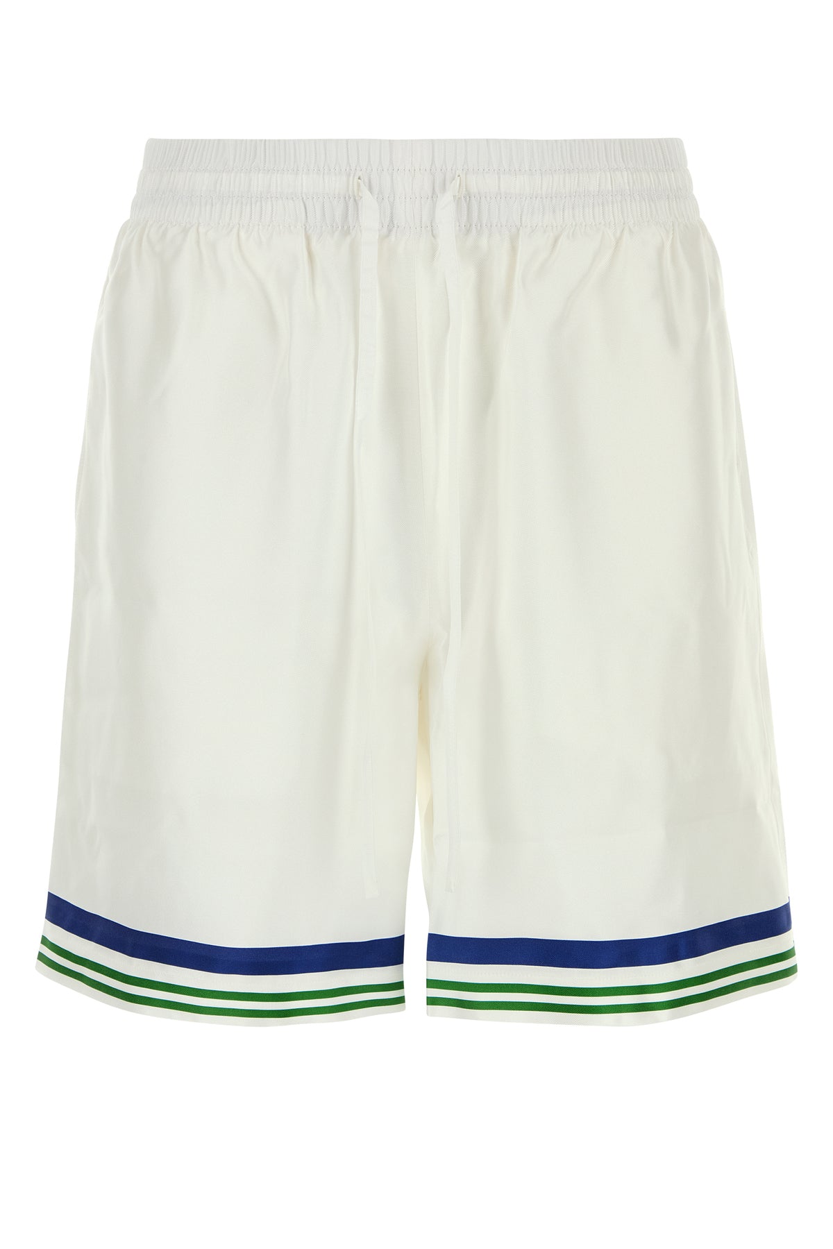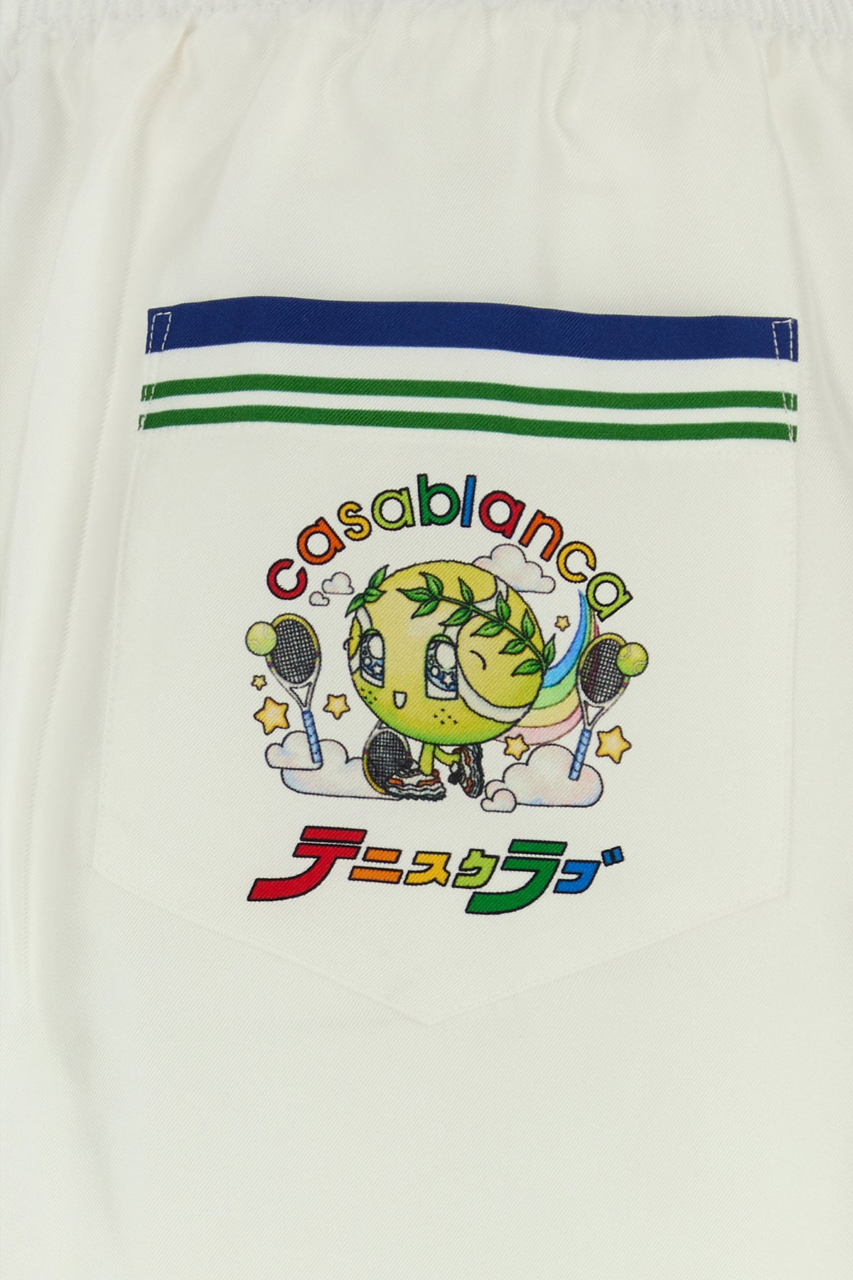 Bermuda realizzati in raso di pura seta caratterizzati da stampa Tennis Club Icon sul retro arricchita da bande a contrasto sul fondo.