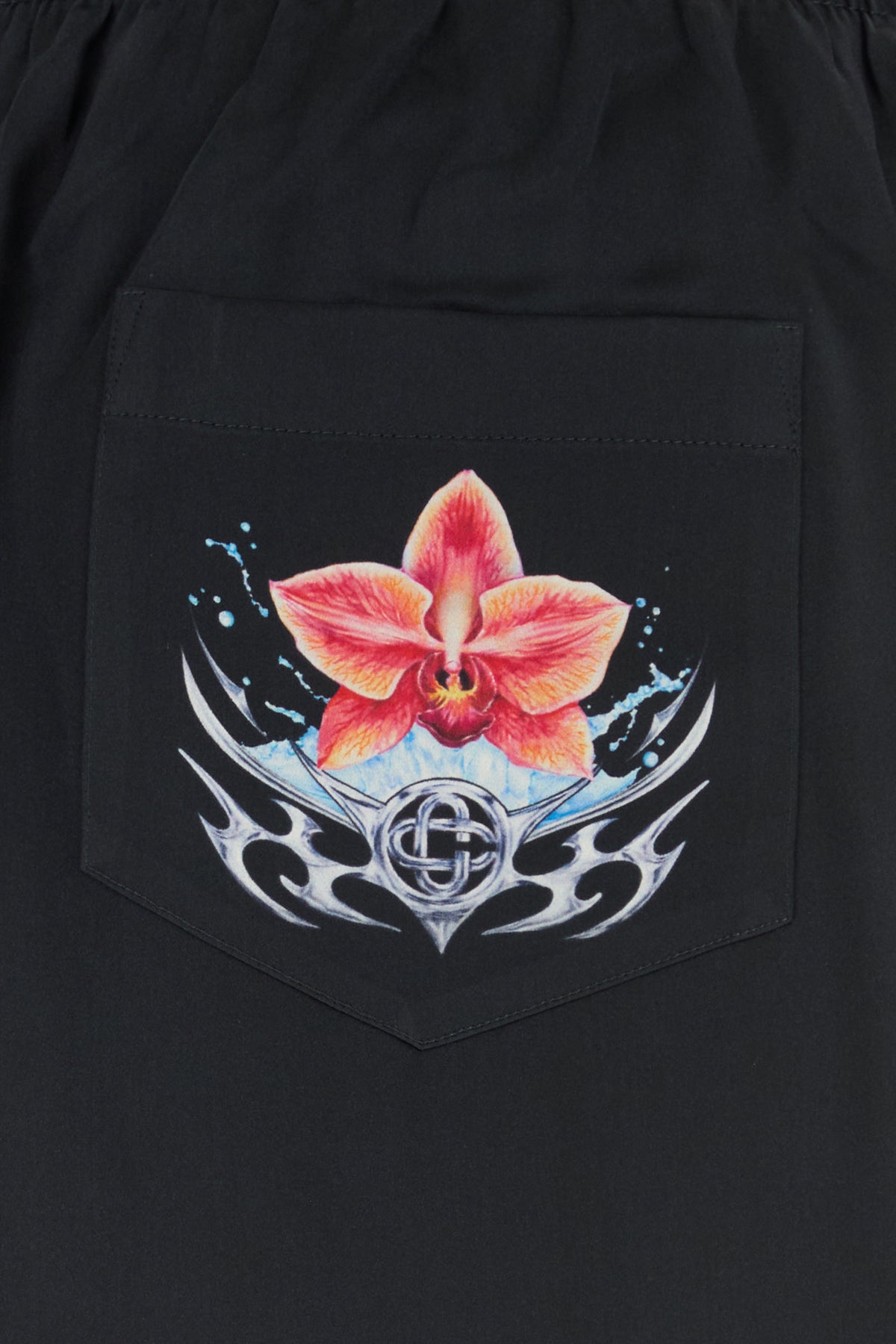Bermuda realizzati in raso di pura seta caratterizzati da stampa Blades su tutta la superficie.