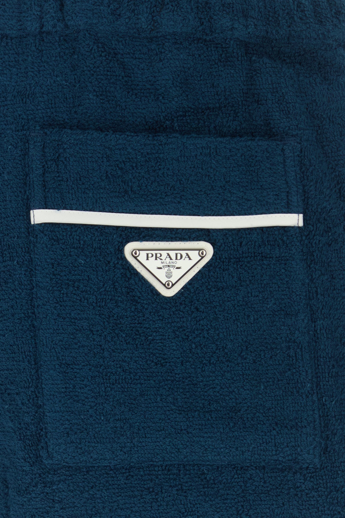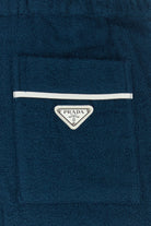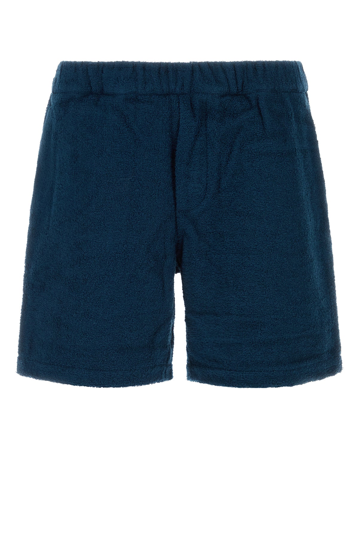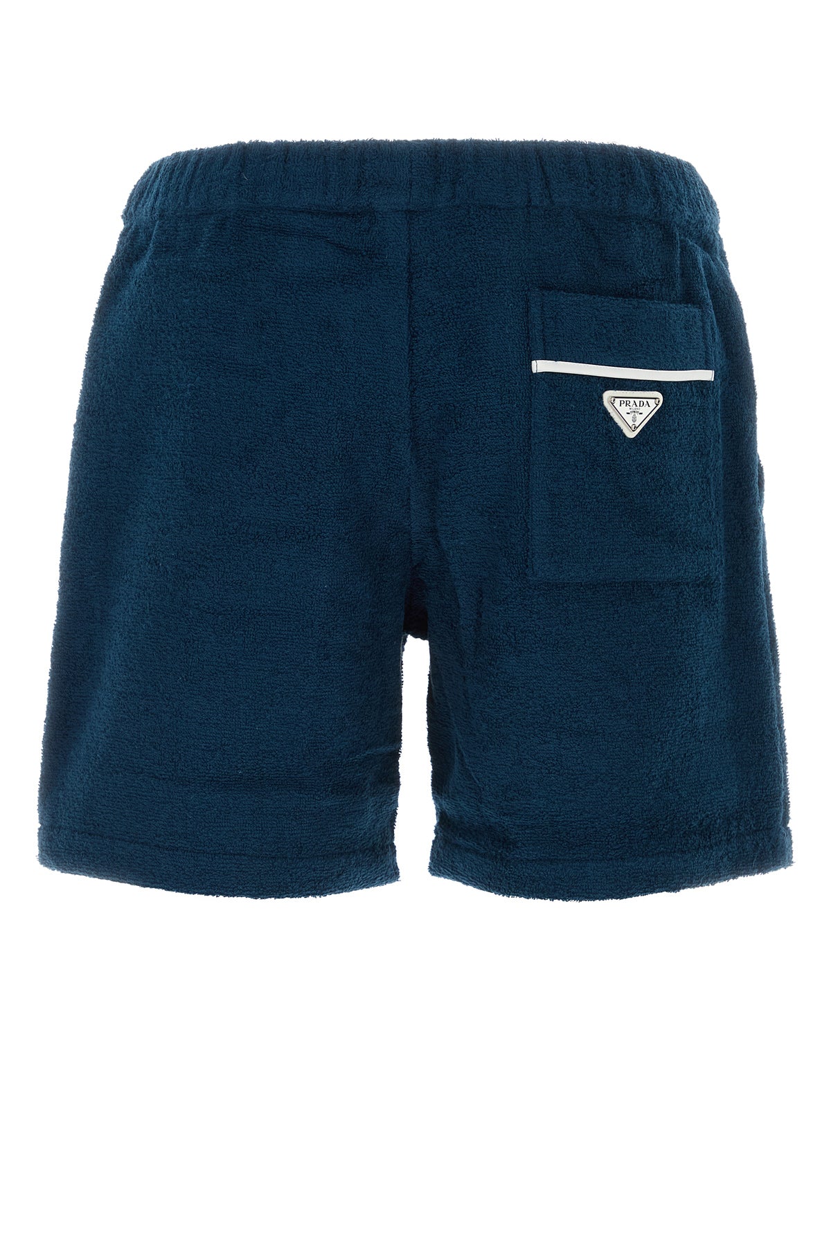 Bermuda realizzati in spugna di puro cotone arricchiti da iconico triangolo metallico logato sul retro.