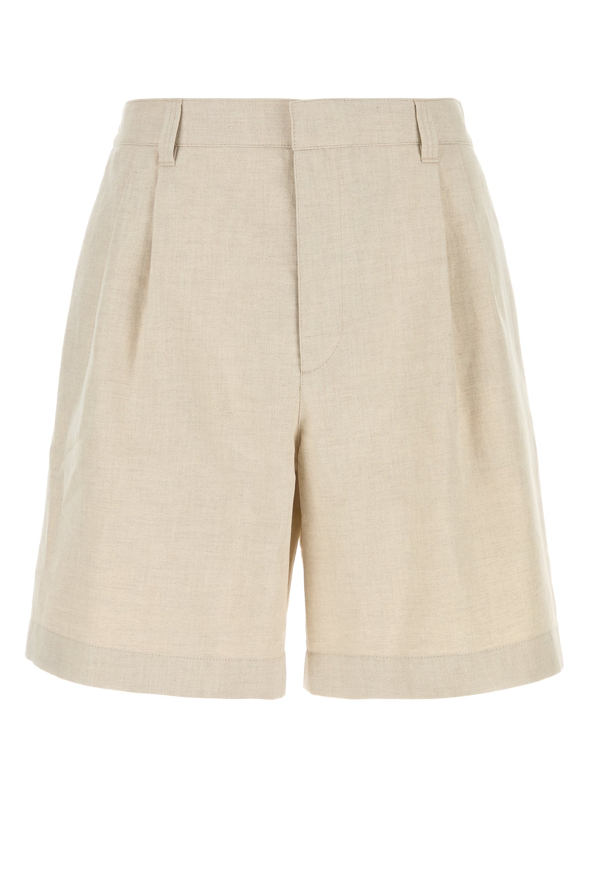 Bermuda realizzati in twill di lino e cotone caratterizzati da pieghe invertite.
