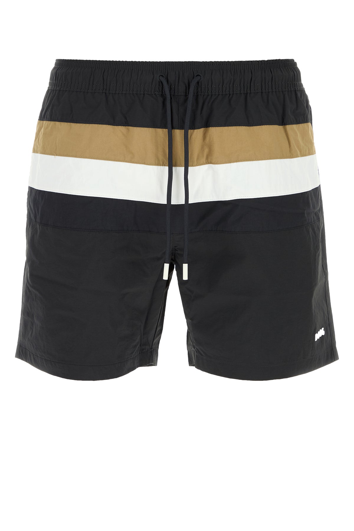 Bermuda mare realizzati in nylon caratterizzati da logo stampato sul fondo arricchiti da bande a contrasto sulla parte frontale.