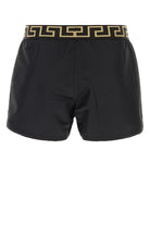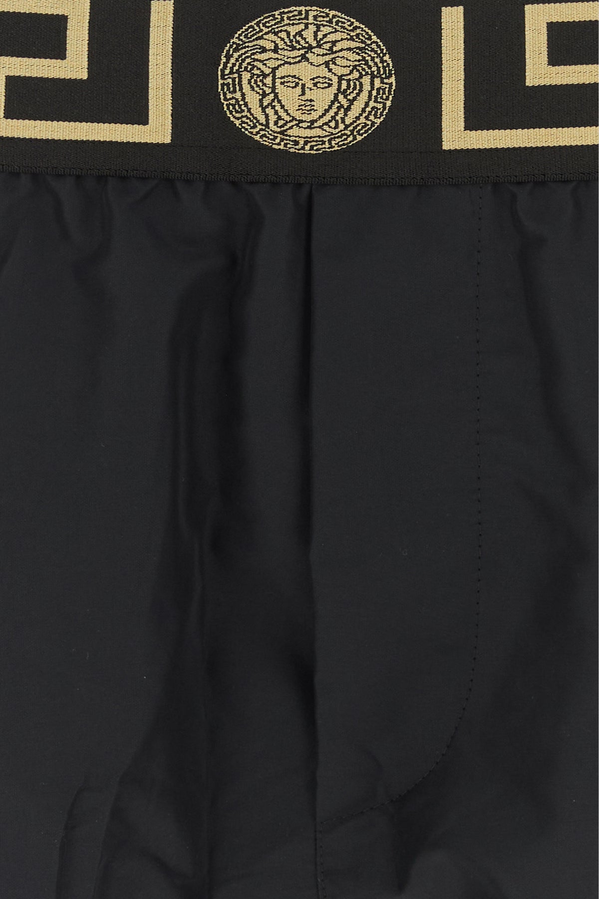 Bermuda mare realizzati in poliestere arricchiti da banda logata a contrasto in vita.