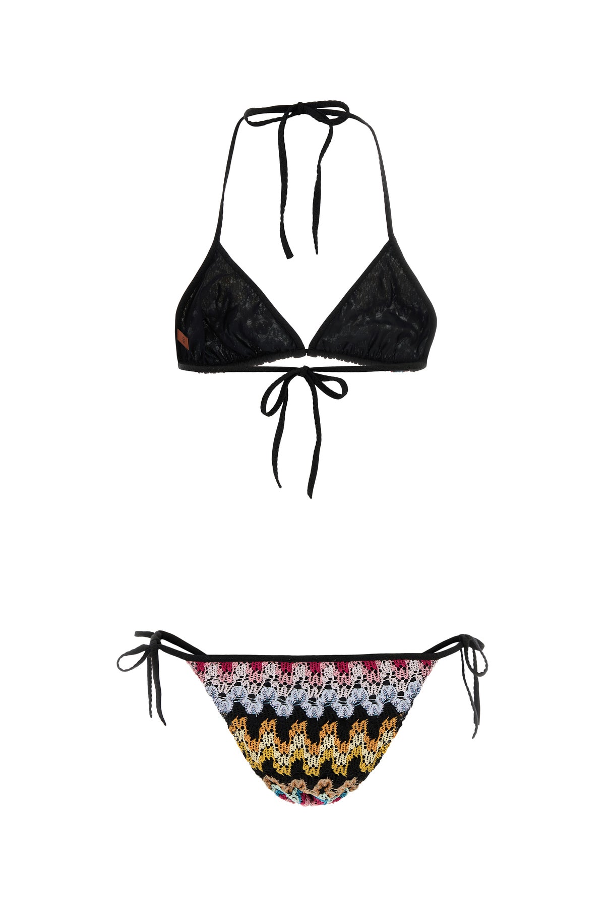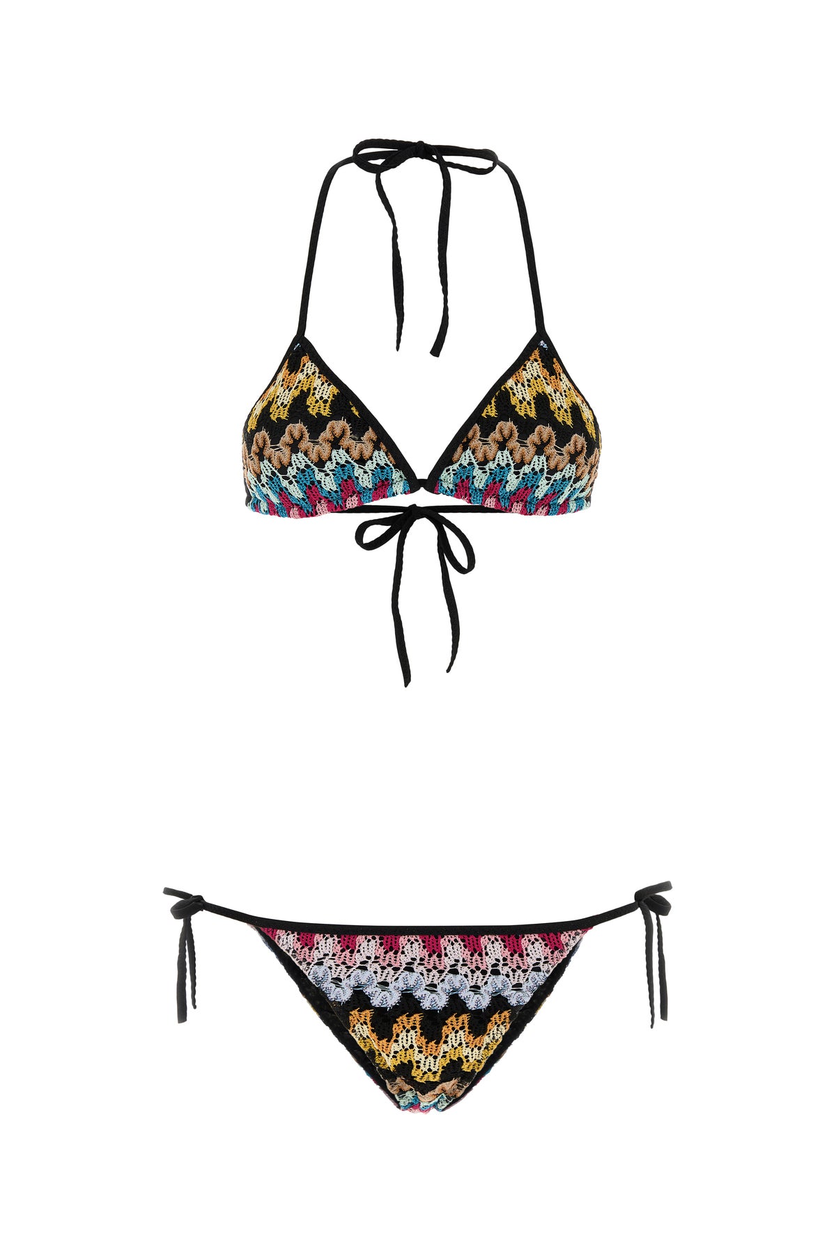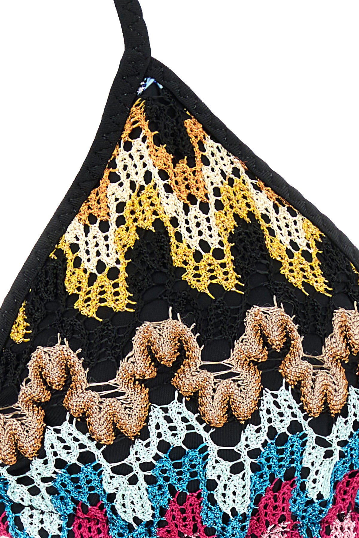 Bikini realizzato in misto viscosa con fili in lurex caratterizzato da particolare ricamo su tutta la superficie.