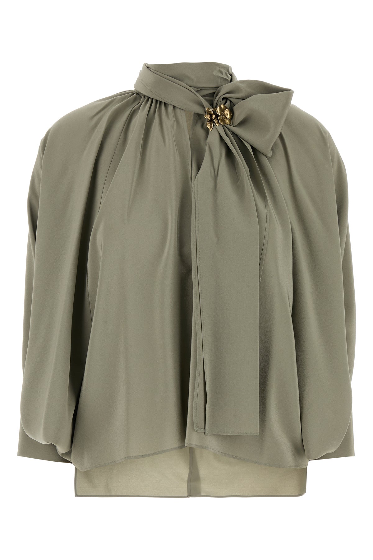 Blusa realizzata in pura seta arricchita da dettaglio metallico sulla parte frontale.
