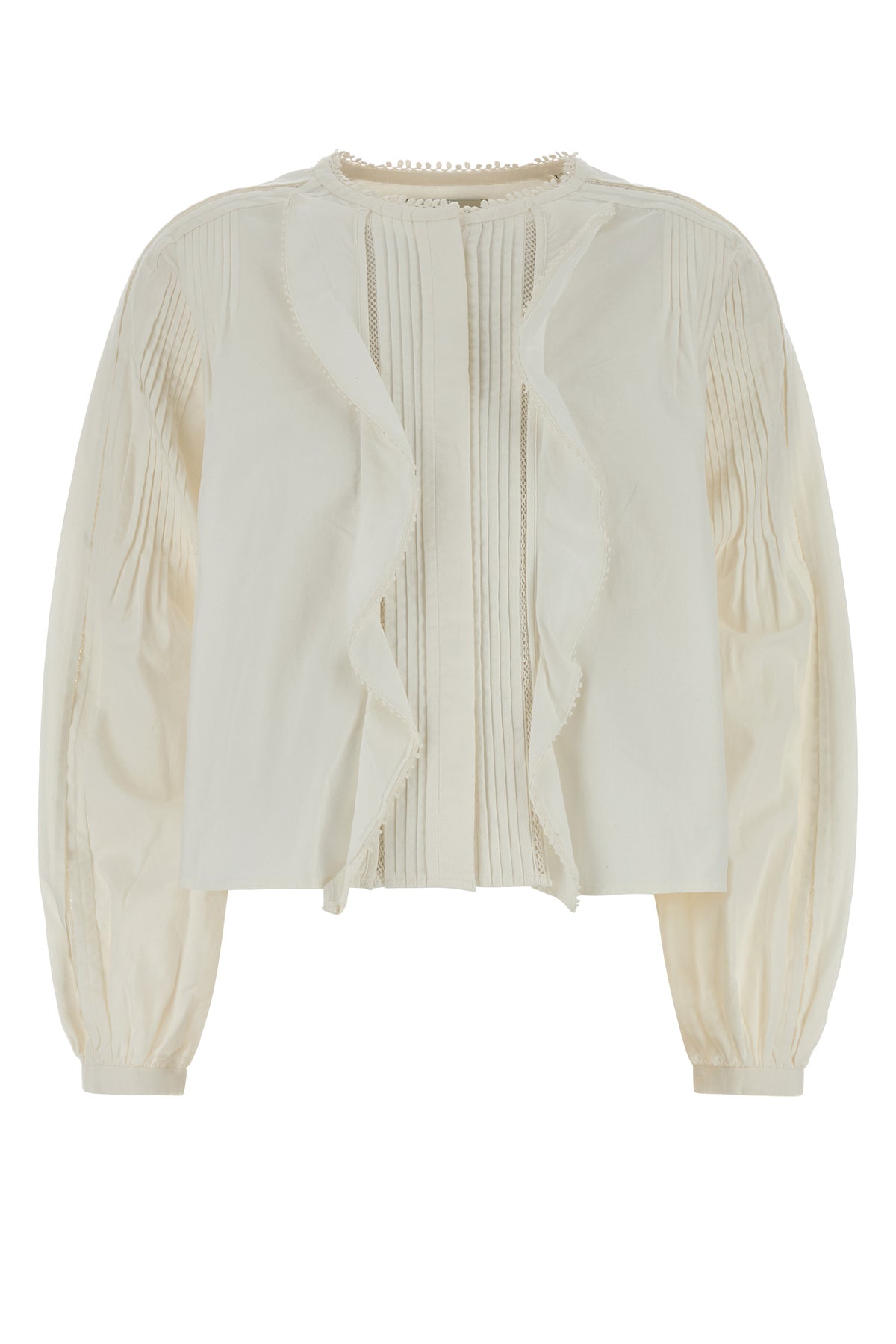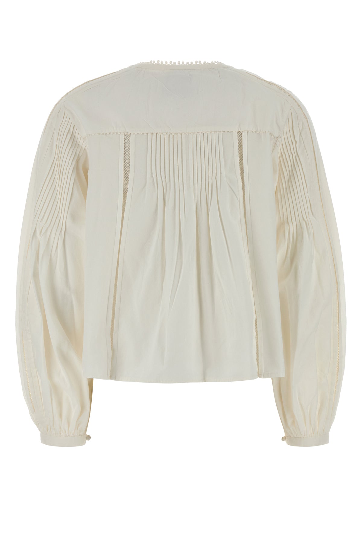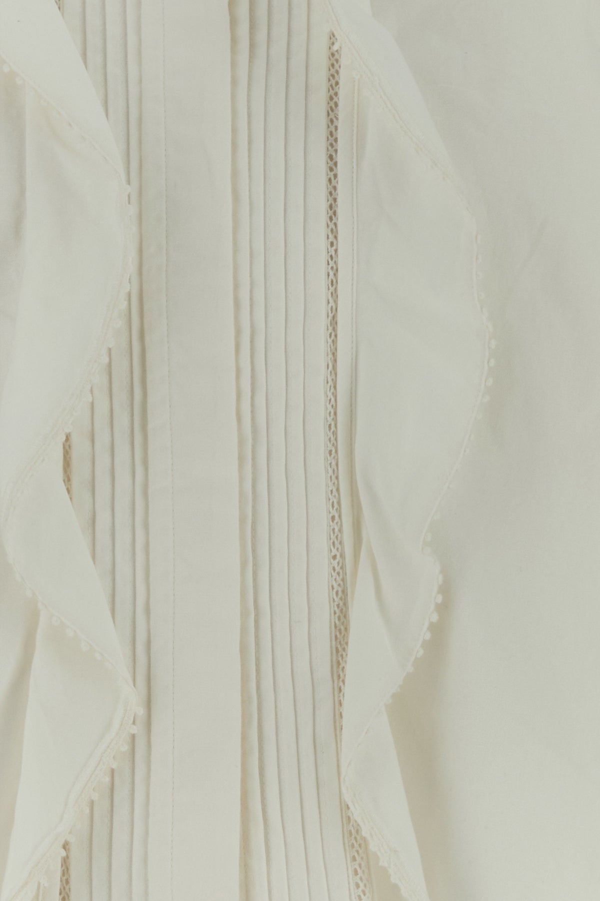 Blusa realizzata in puro cotone arricchita da ruches sulla parte frontale.