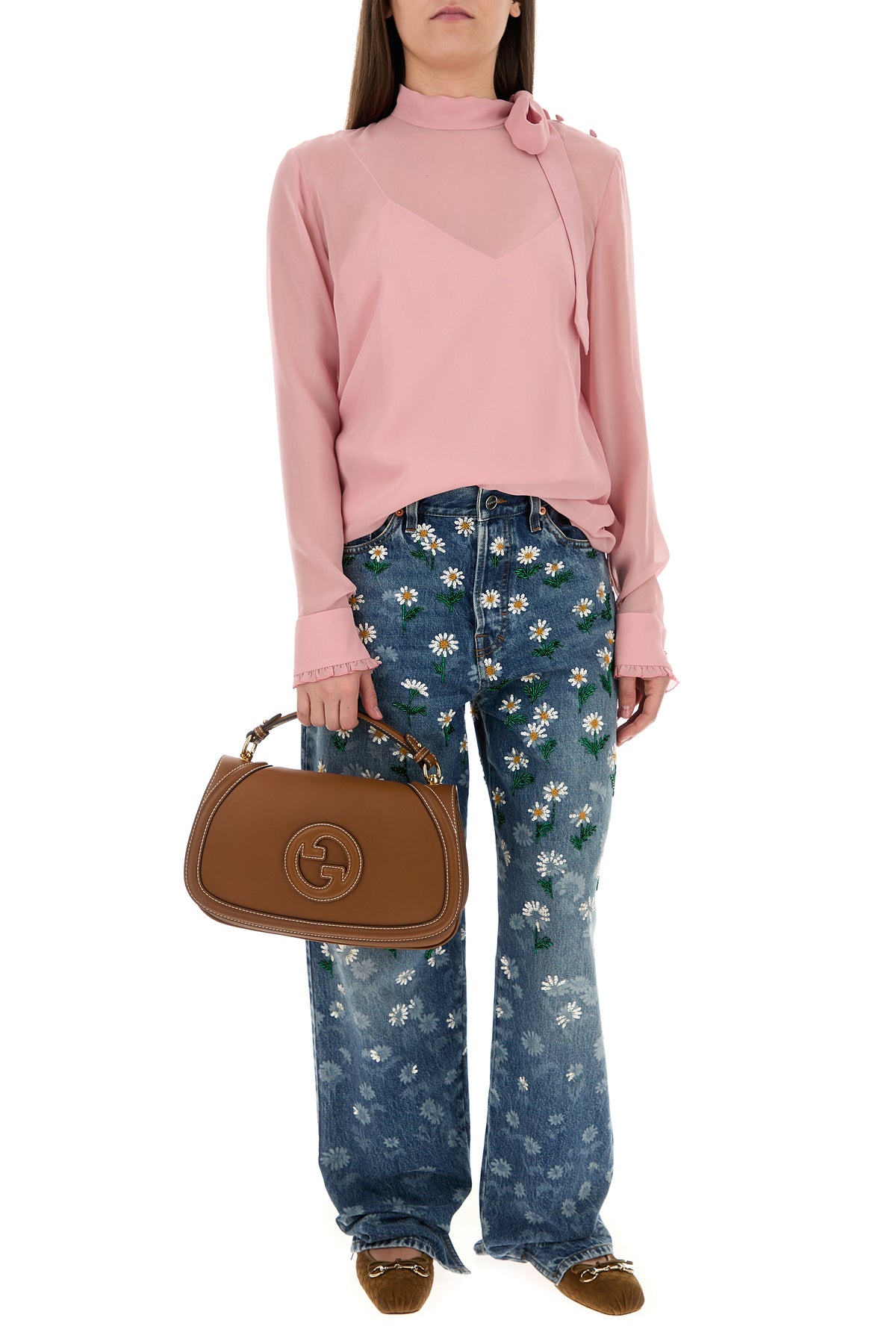 Blusa realizzata in crepe di pura seta arricchita da dettagli GG gioiello sui polsini.