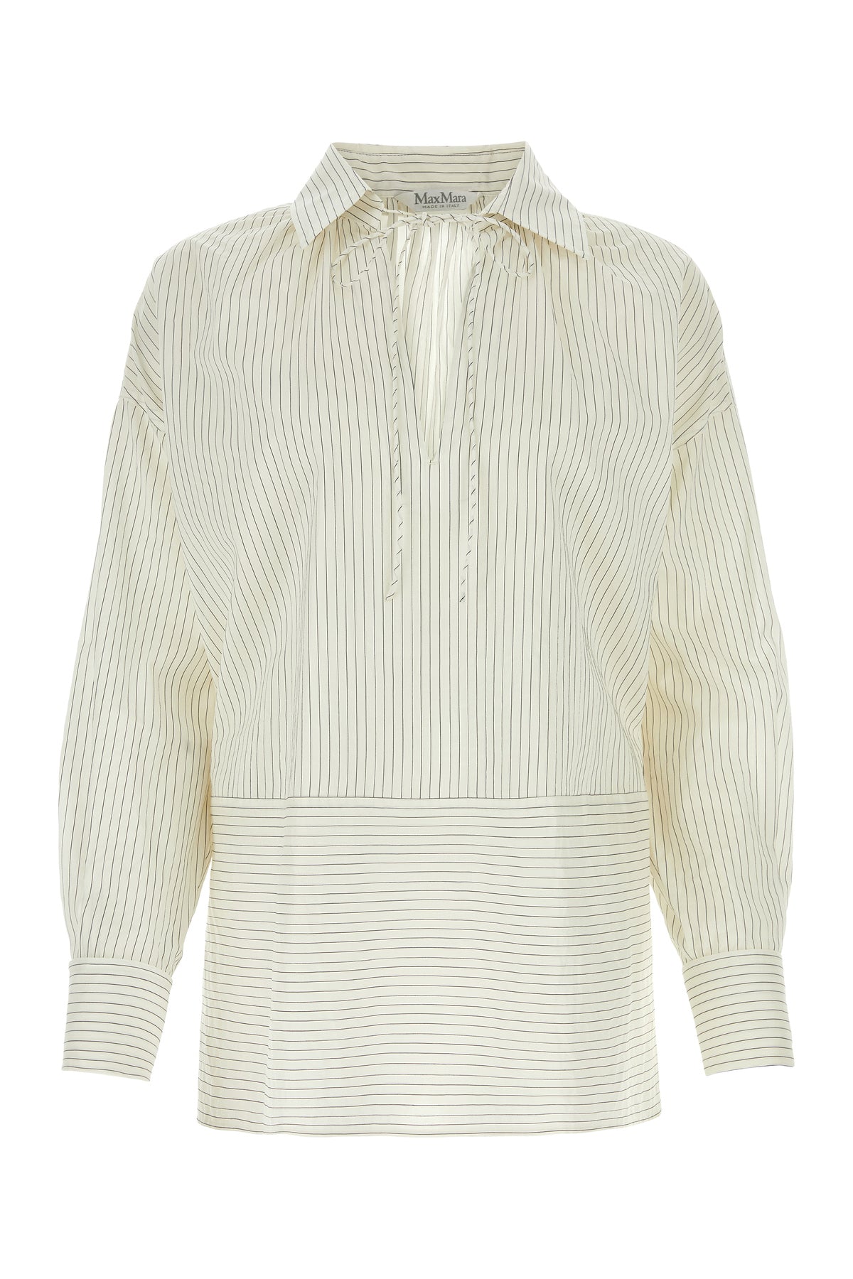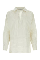 Blusa realizzata in cotone e seta caratterizzata da ricamo a righe su tutta la superficie.