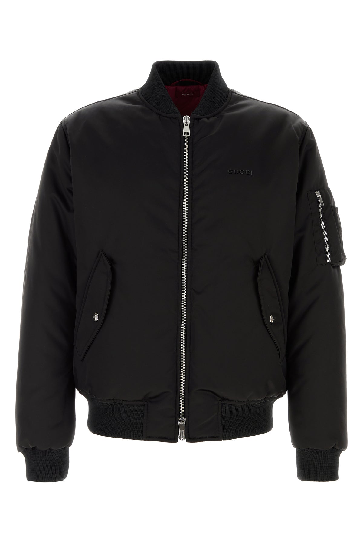 Bomber realizzato in nylon arricchito da logo in lettere metalliche sul petto.
