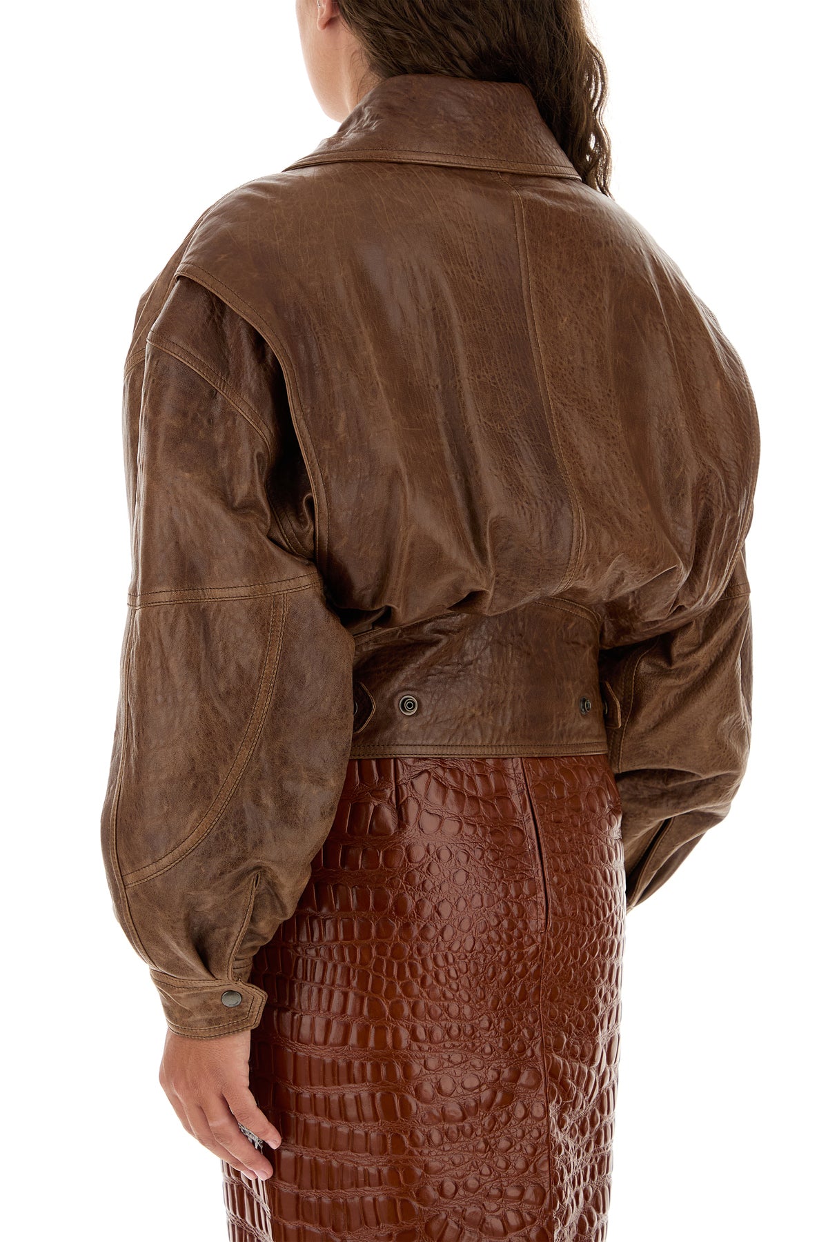Bomber dal taglio corto realizzato in pelle di agnello ad effetto vintage.