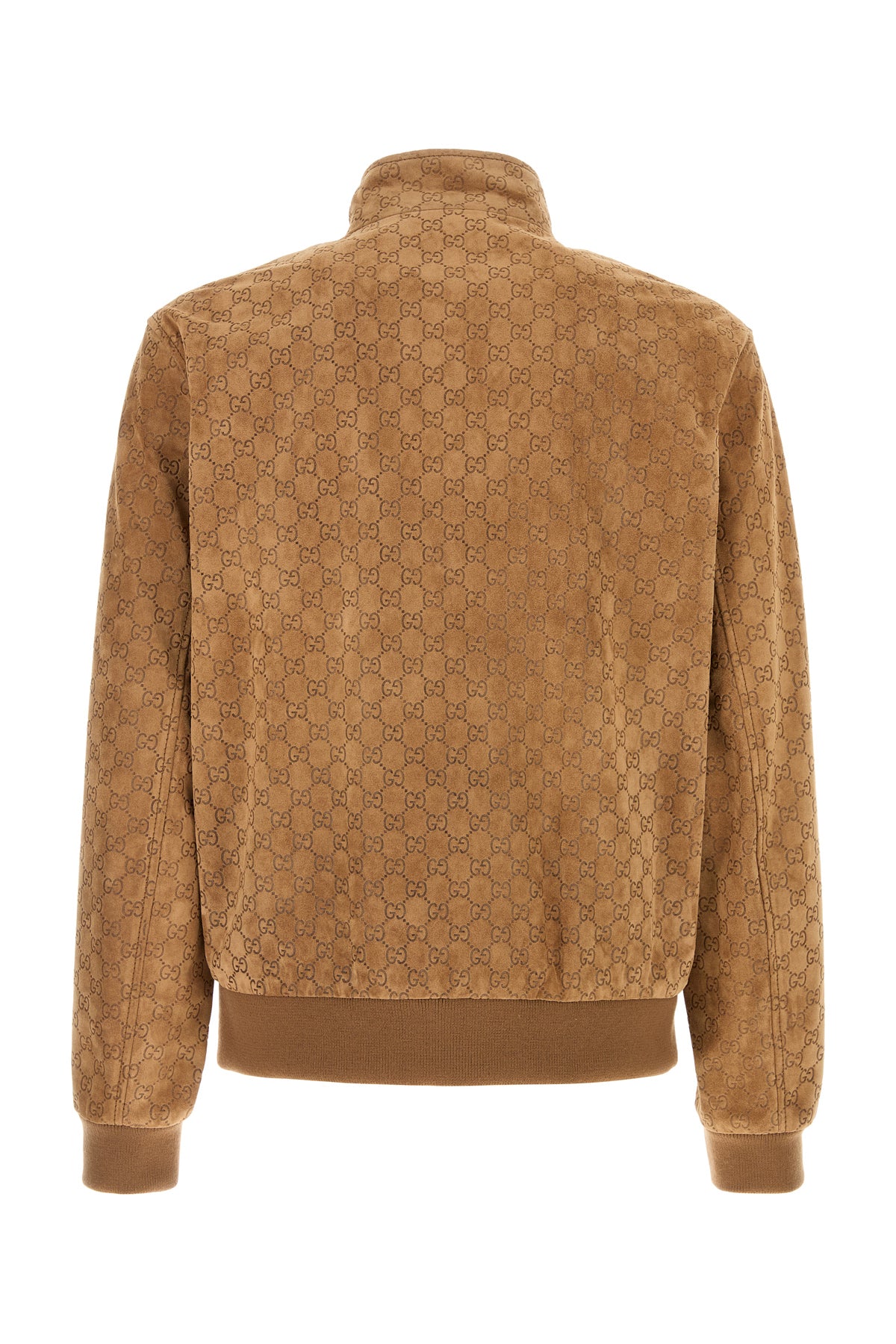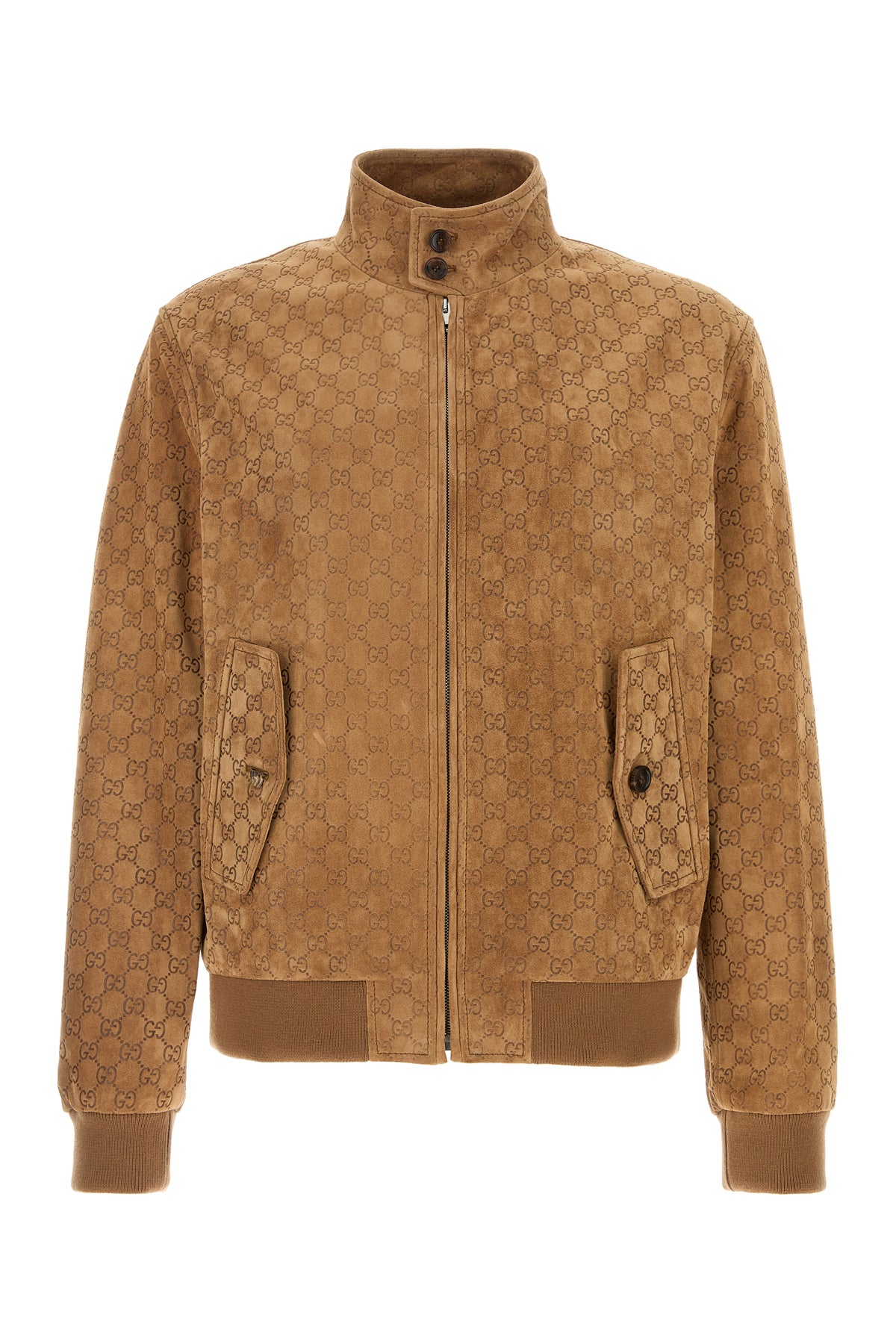 Bomber realizzato in pelle di vitello scamosciata caratterizzata da GG impresso su tutta la superficie.