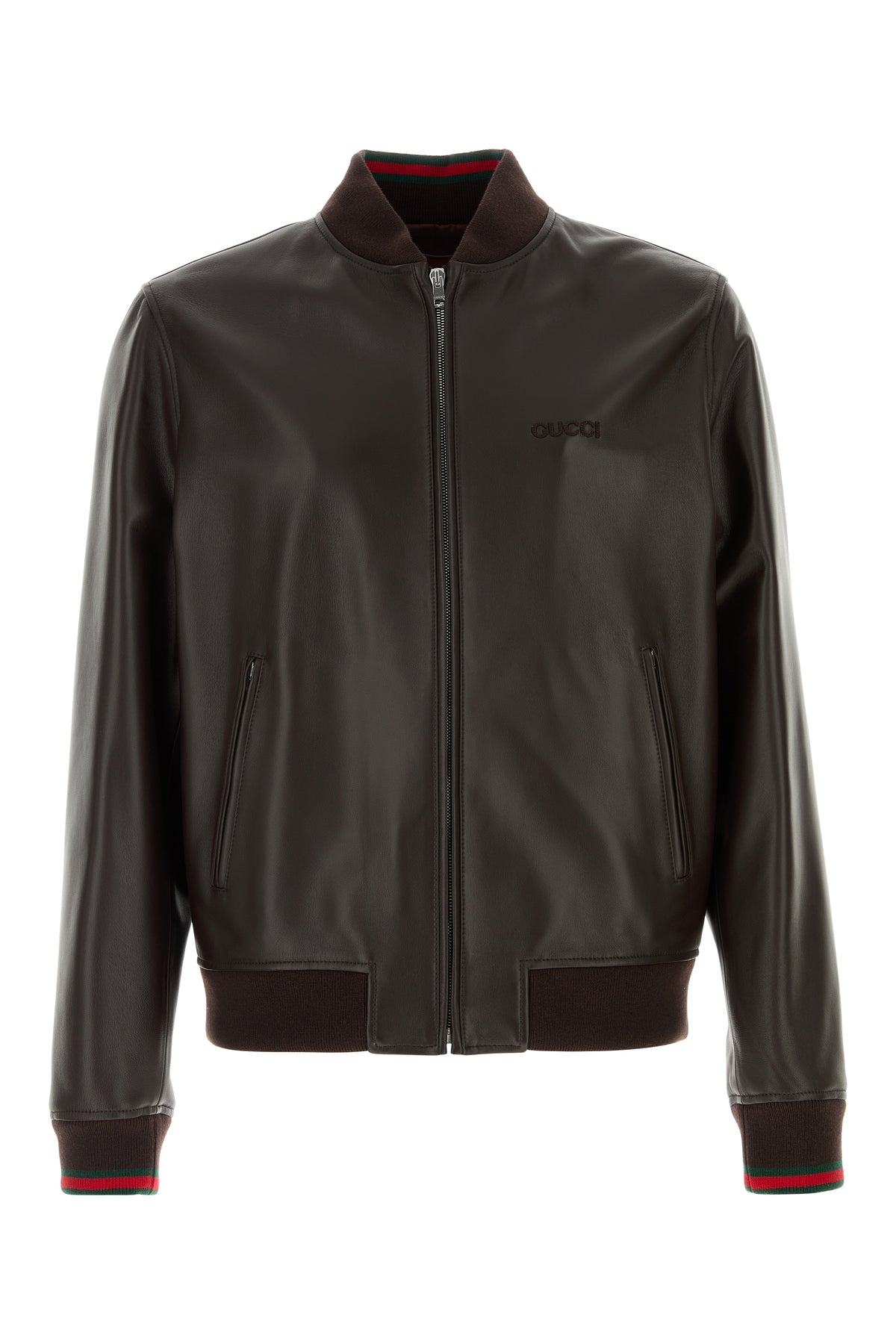 Bomber realizzato in pelle di agnello arricchito da applicazione logata tonale sul petto.
