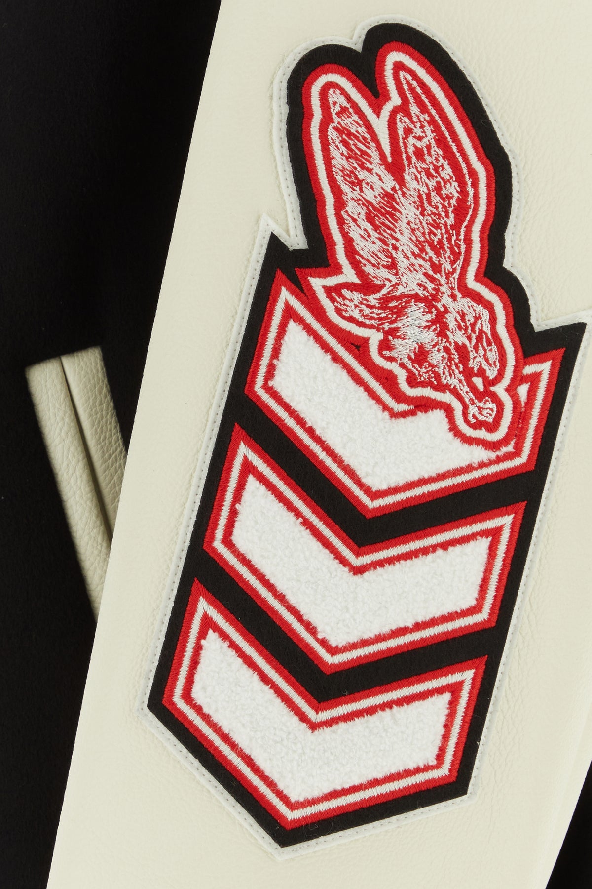 Bomber creato in collaborazione con Future realizzato in misto lana vergine e seta con inserti in pelle a contrasto sulle maniche caratterizzato da logo ricamato a contrasto sulla parte frontale arricchito da applicazioni logate su tutta la superficie.