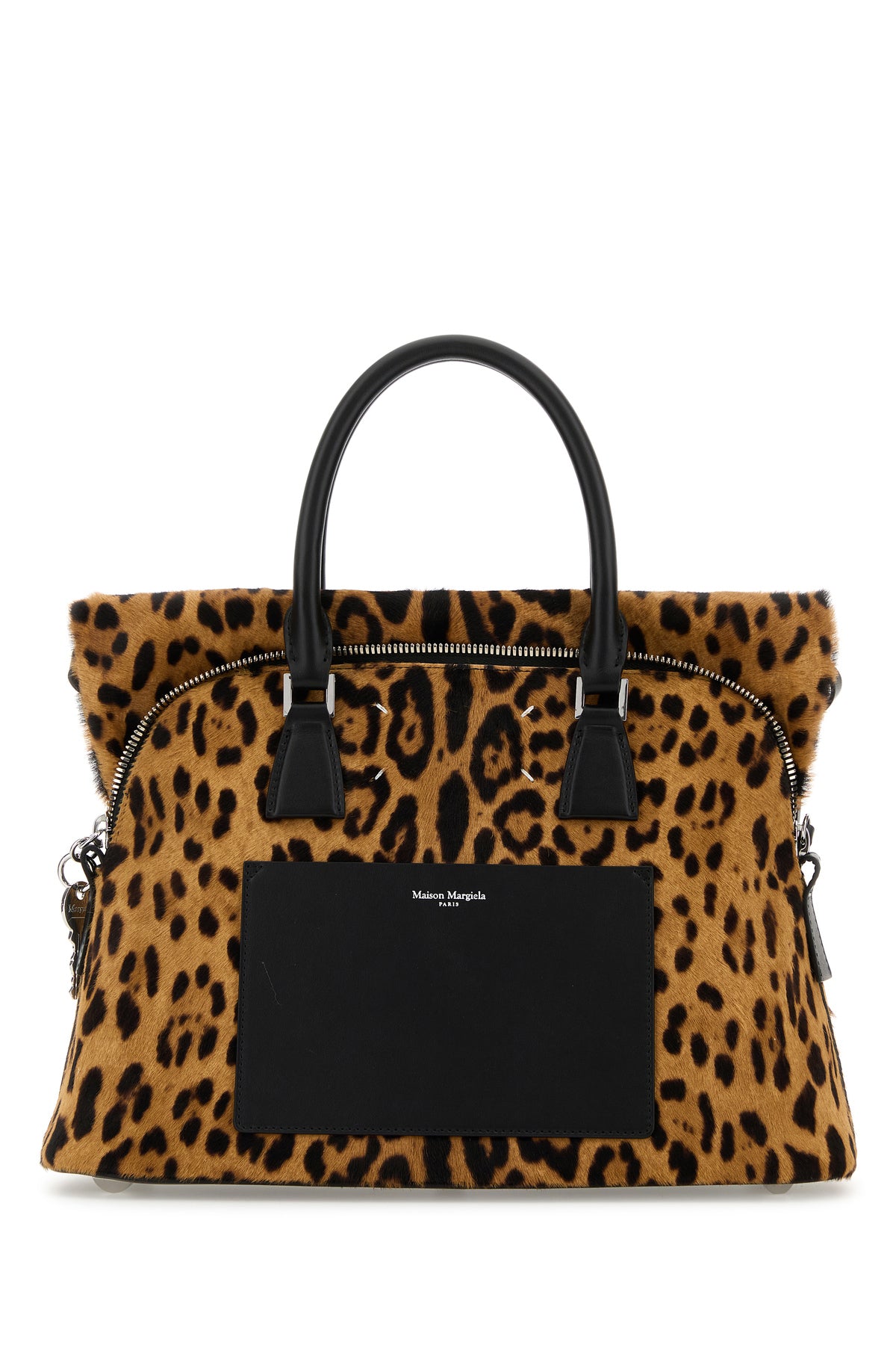 Borsa a mano realizzata in cavallino caratterizzata da stampa animalier su tutta la superficie, logo stampato sulla parte frontale arricchita da etichetta logata sulla sulla parte frontale.