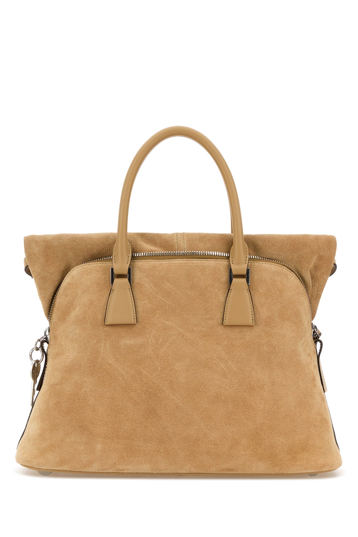 Borsa a mano realizzata in pelle scamosciata caratterizzata da iconica cucitura a contrasto sulla parte frontale.