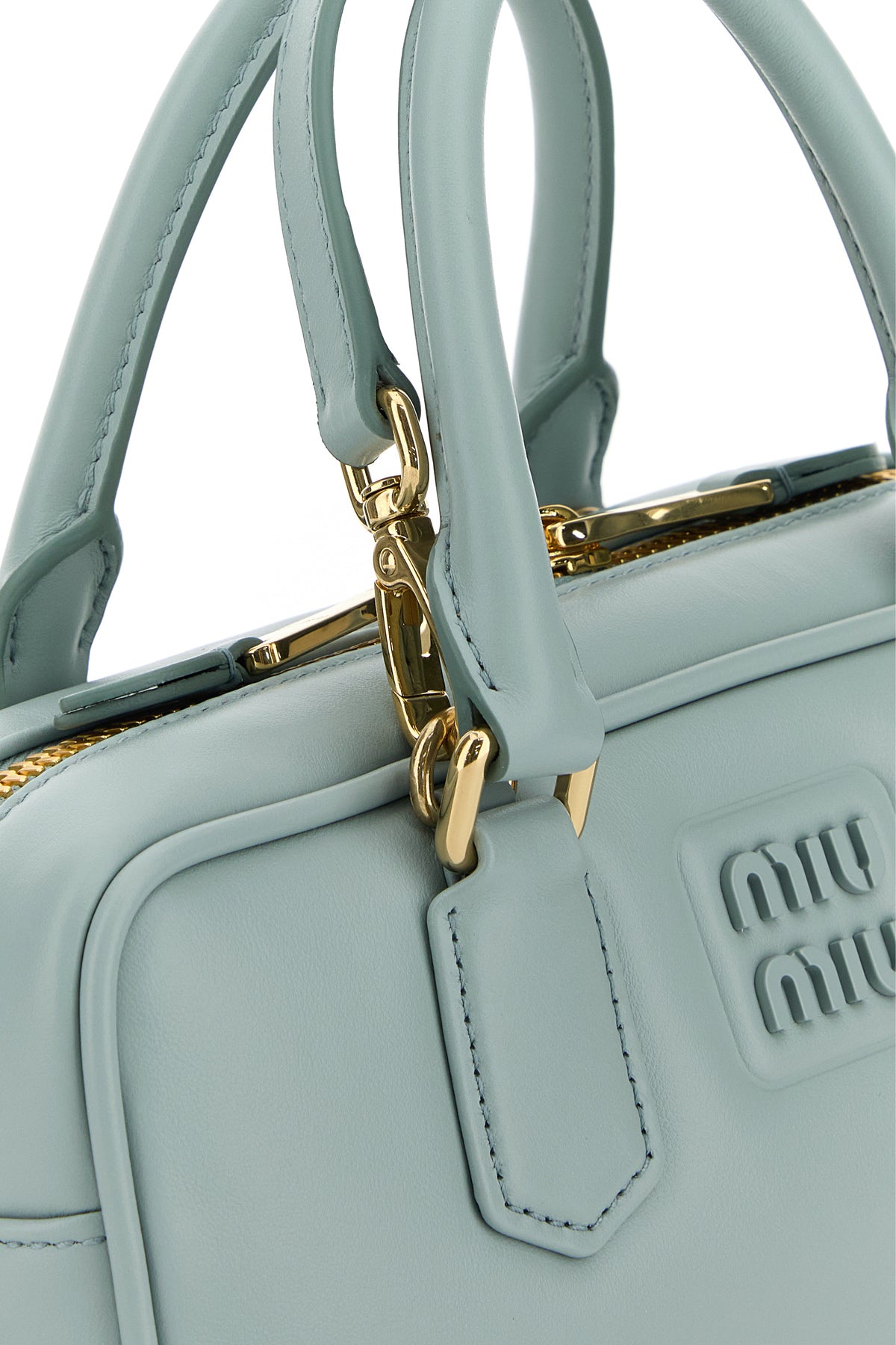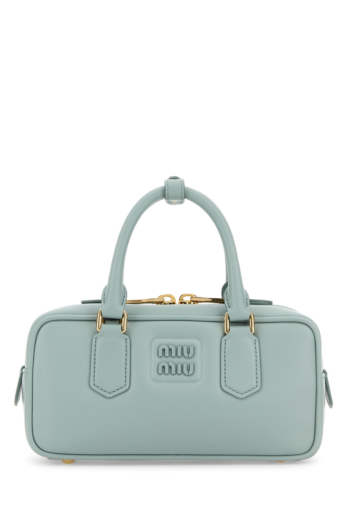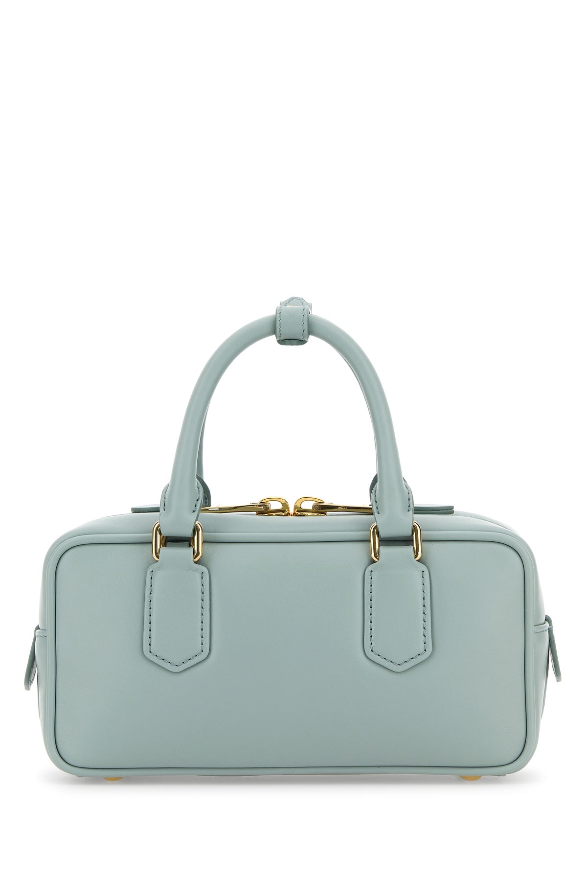 Borsa a mano realizzata in pelle liscia arricchita da logo in lettere metalliche tonali sulla parte frontale.