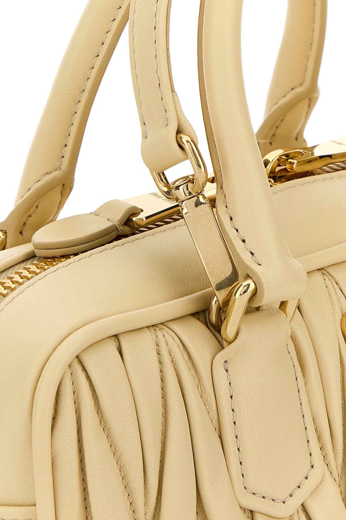 Borsa a mano realizzata in pelle matelasse e pelle liscia arricchita da logo in lettere metalliche sulla parte frontale e accessorio amovibile in pelle tonale.