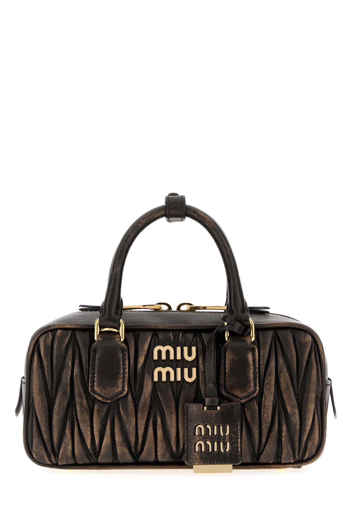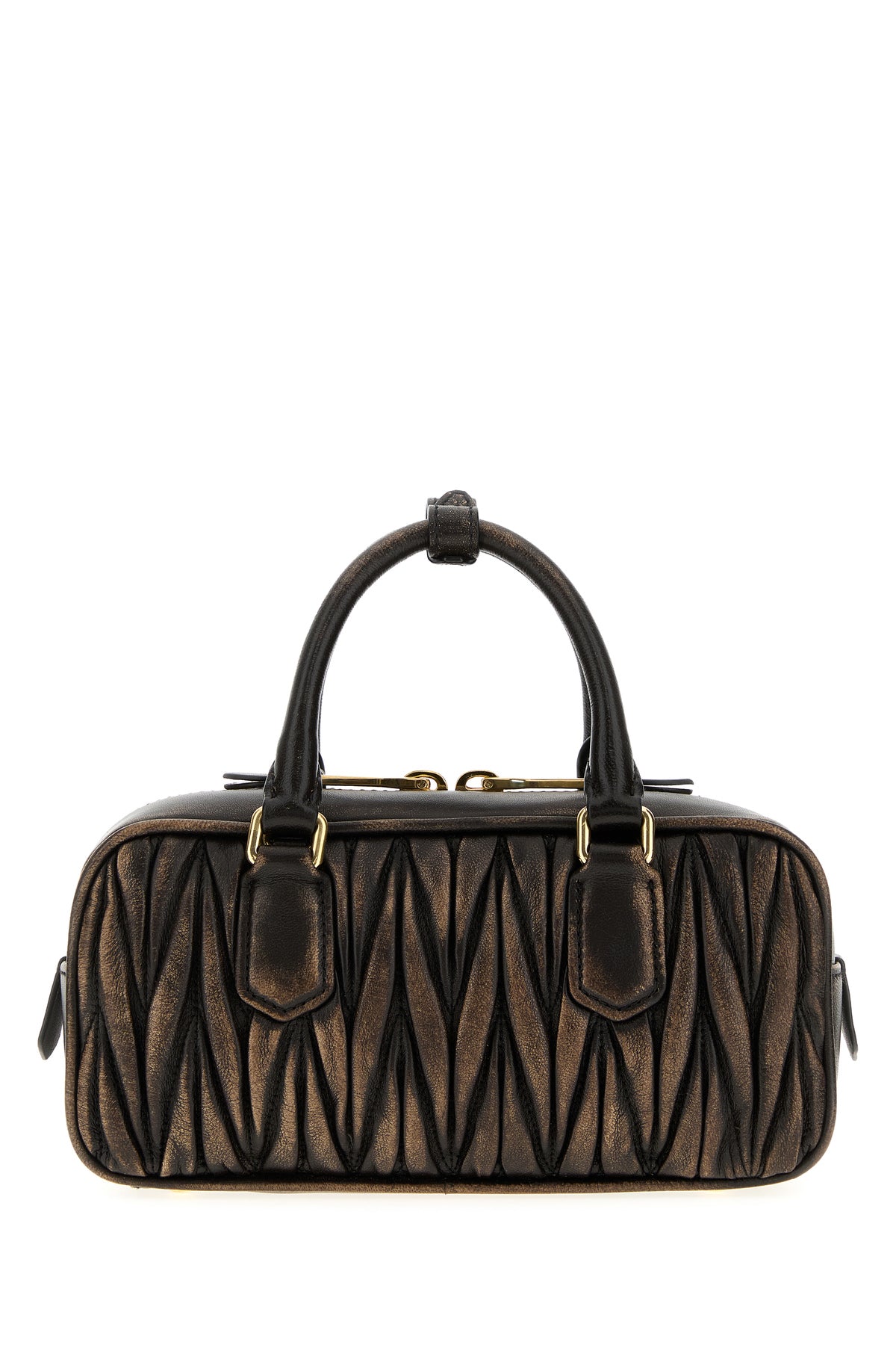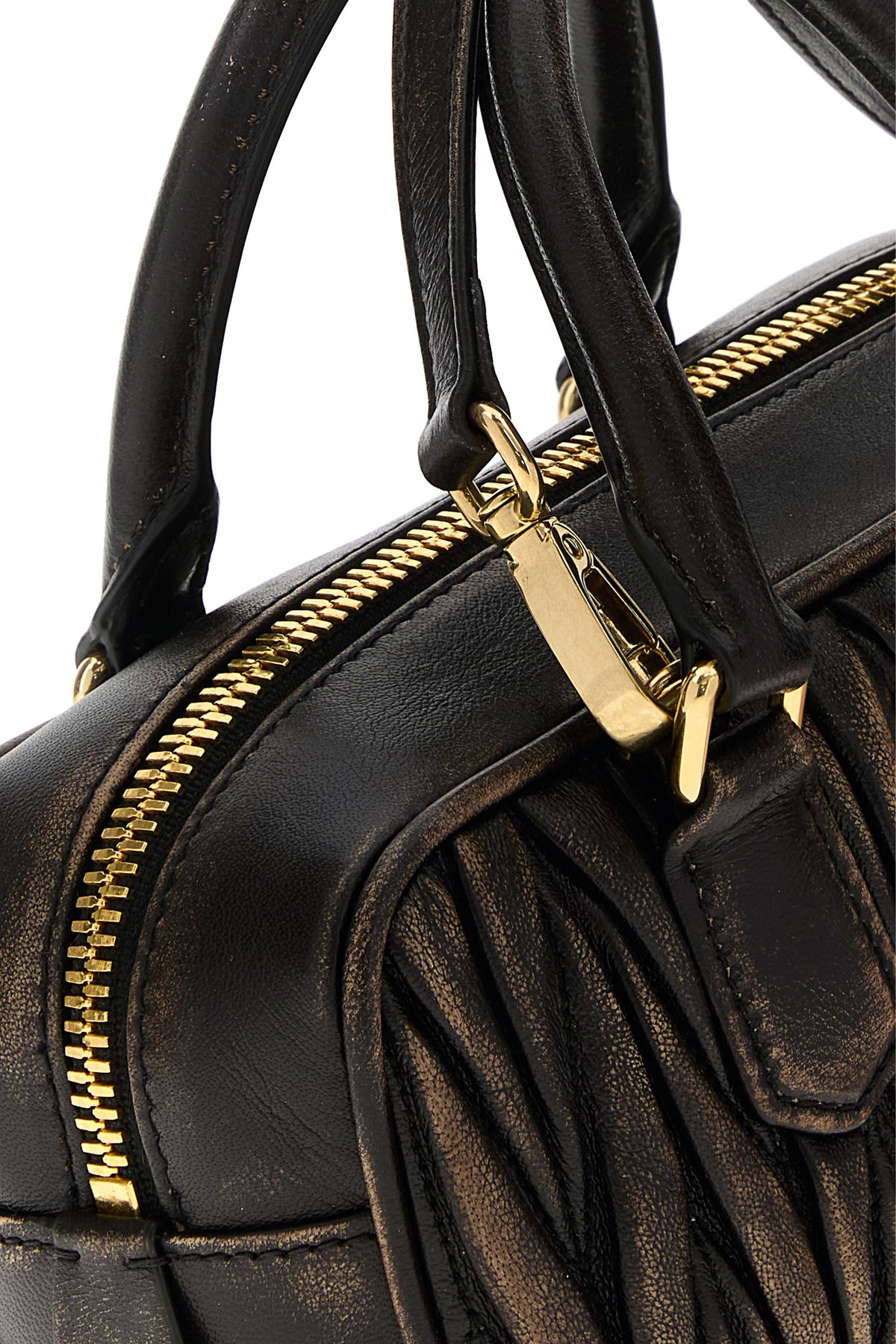 Borsa a mano realizzata in pelle matelasse ad effetto vintage arricchita da logo in lettere metalliche sulla parte frontale e accessorio amovibile in pelle tonale.