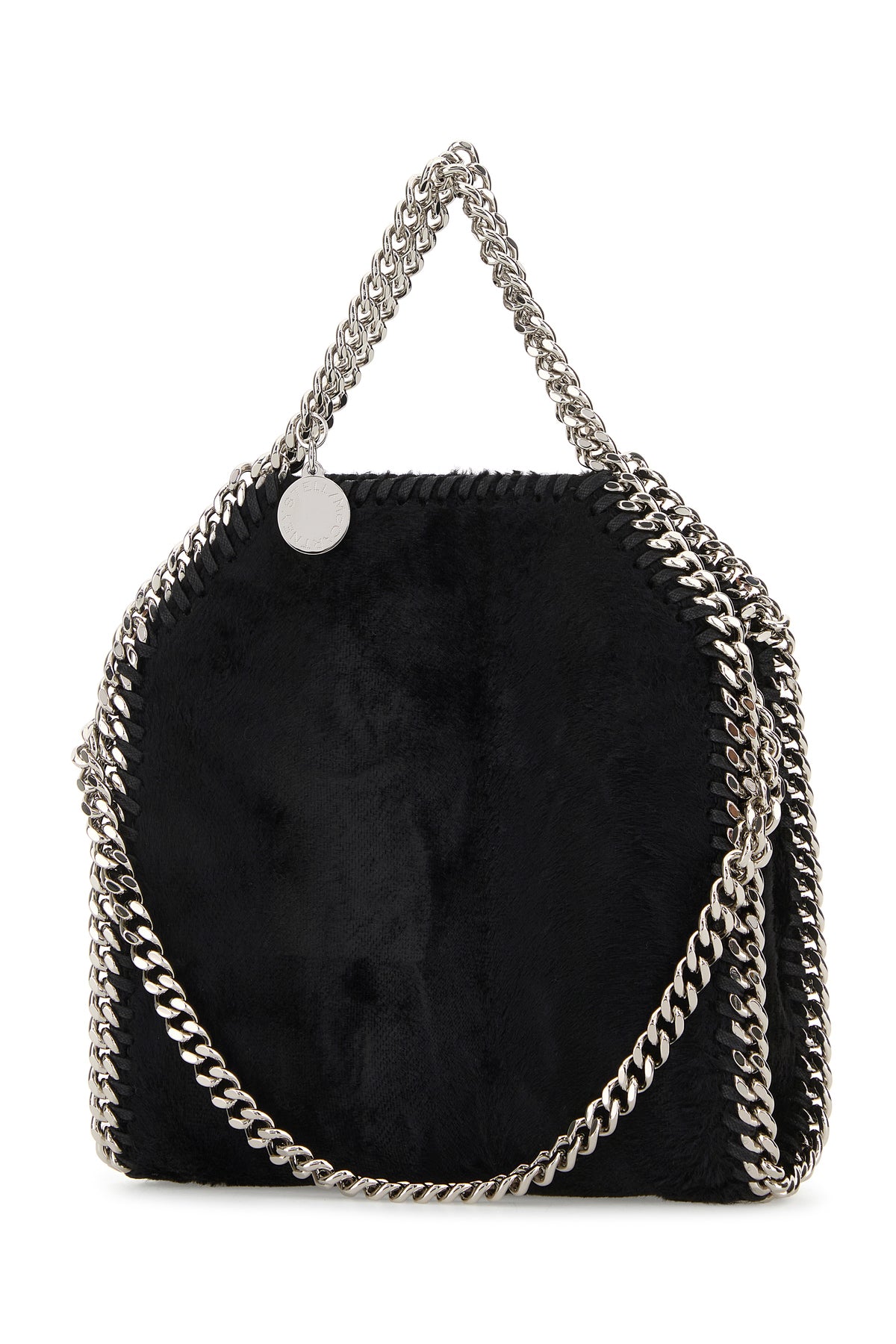 Borsa a mano realizzata in velluto caratterizzata da profilature in catena metallica.