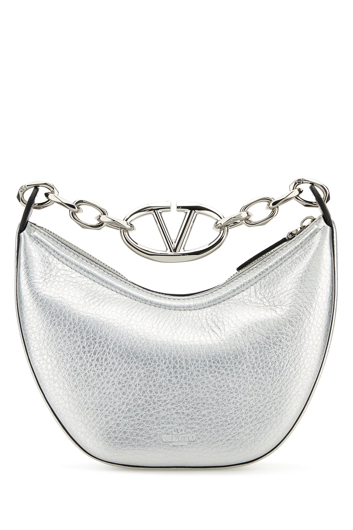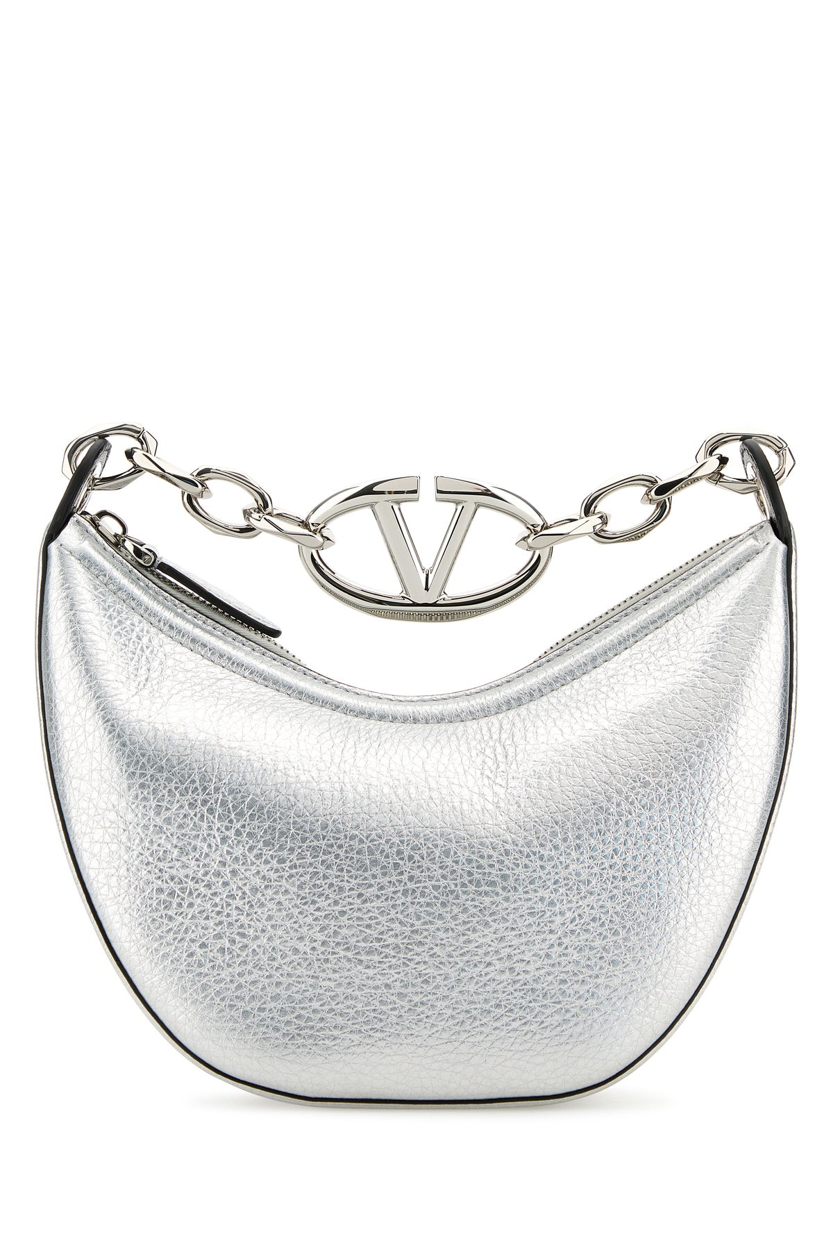 Borsa a mano Hobo VLogo Moon in pelle argento