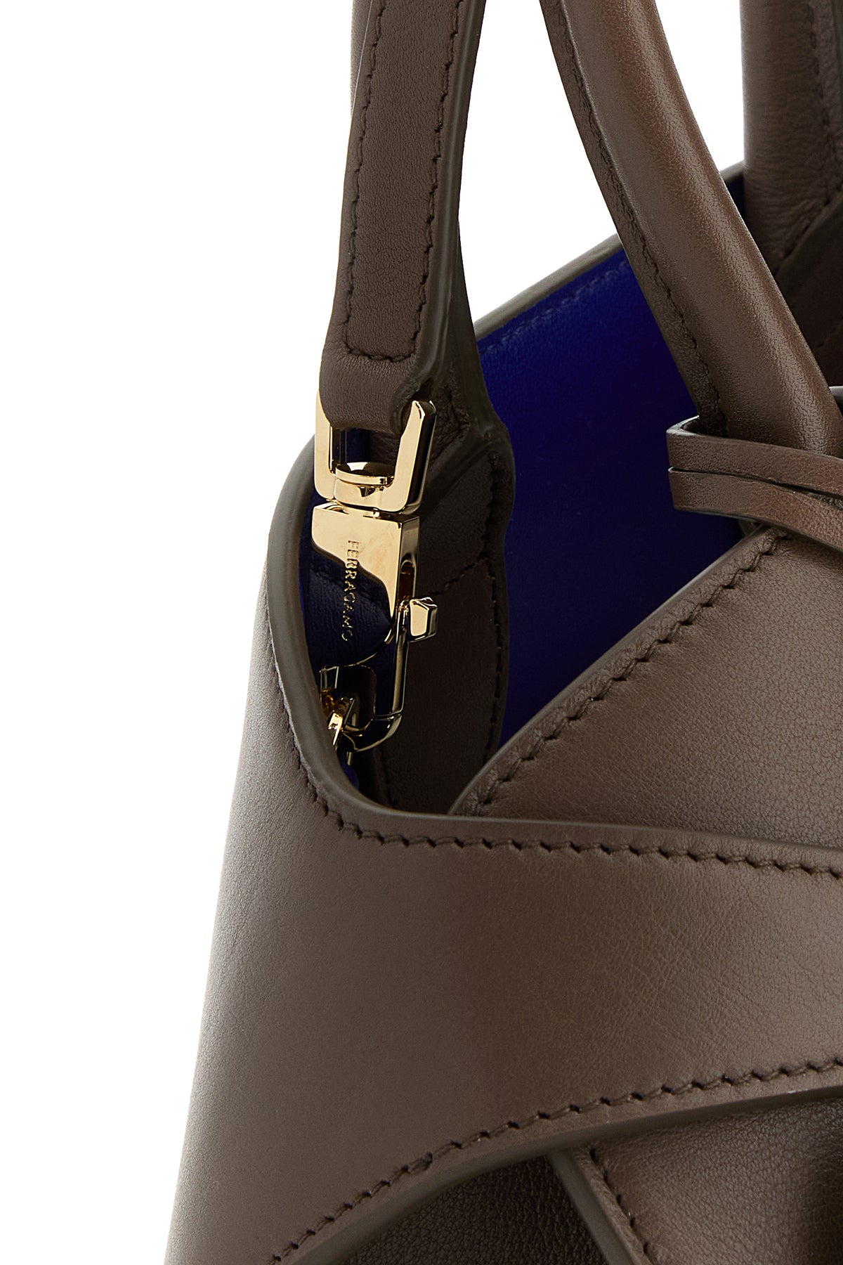 Borsa a mano realizzata in pelle di vitello leggermente martellata caratterizzata da logo stampato laminato sulla parte frontale arricchita da cinturini in pelle tonale con dettagli Gancini in metallo sulla parte frontale e accessorio portachiavi amovibile.
