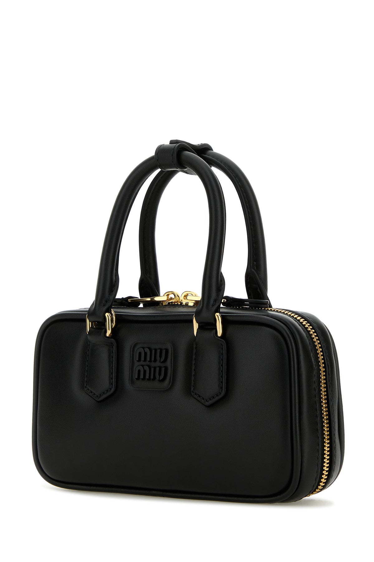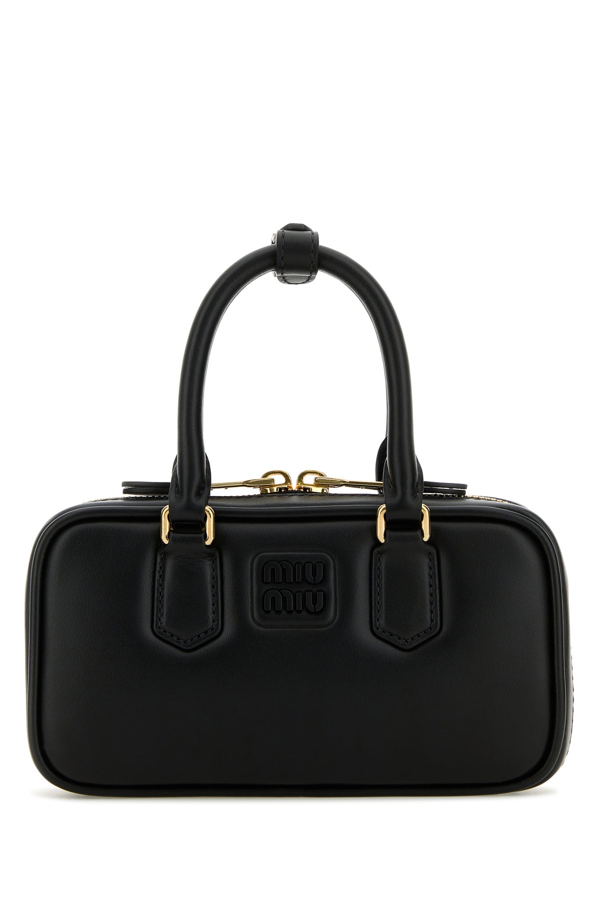 Borsa a mano realizzata in nappa liscia arricchita da logo in lettere metalliche tonale sulla parte frontale.