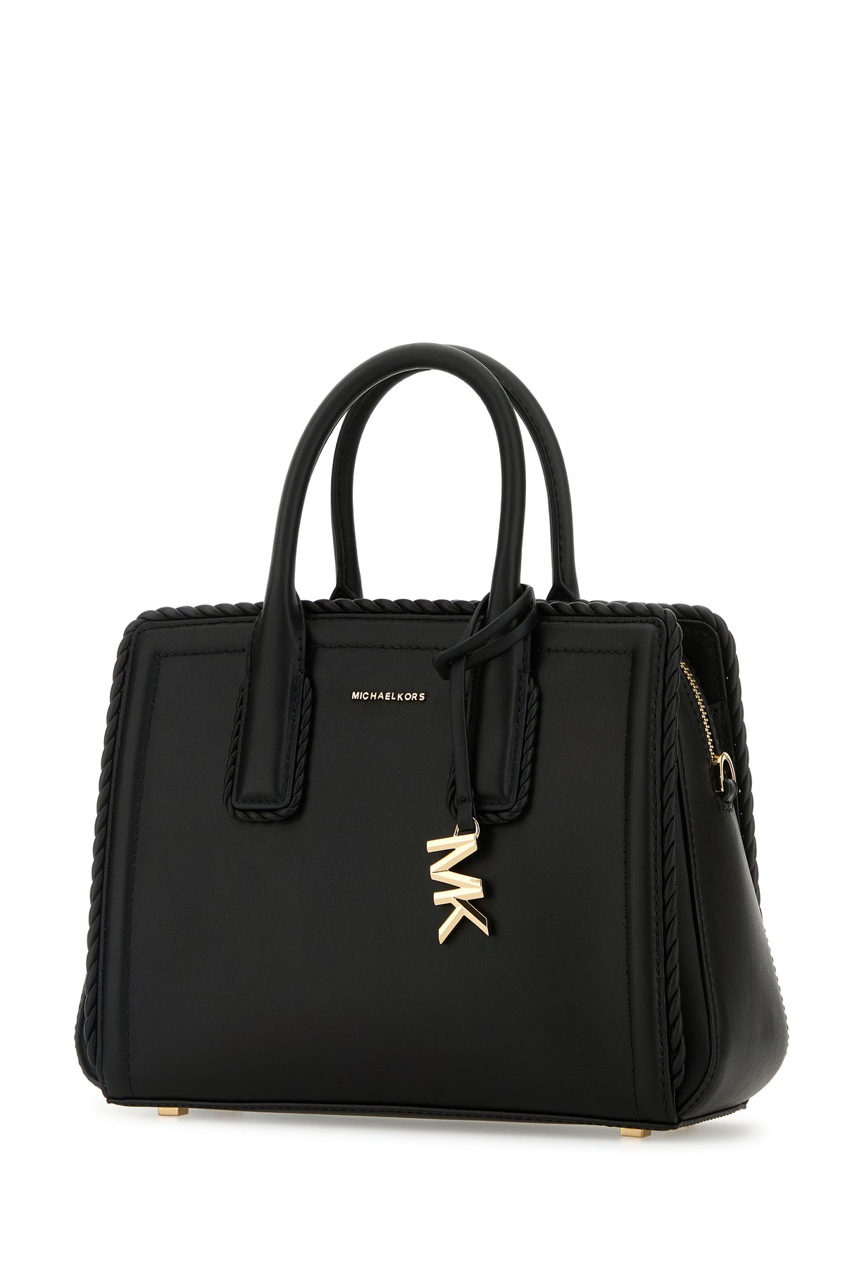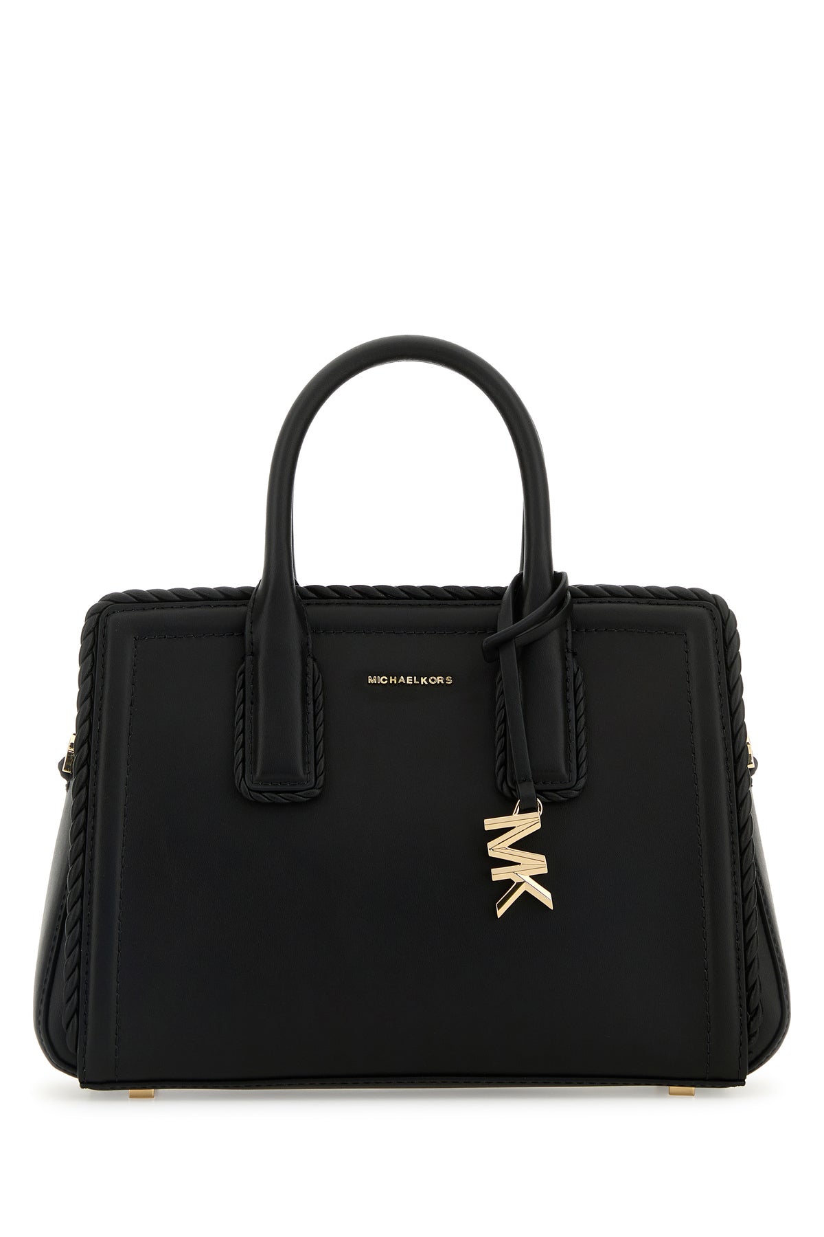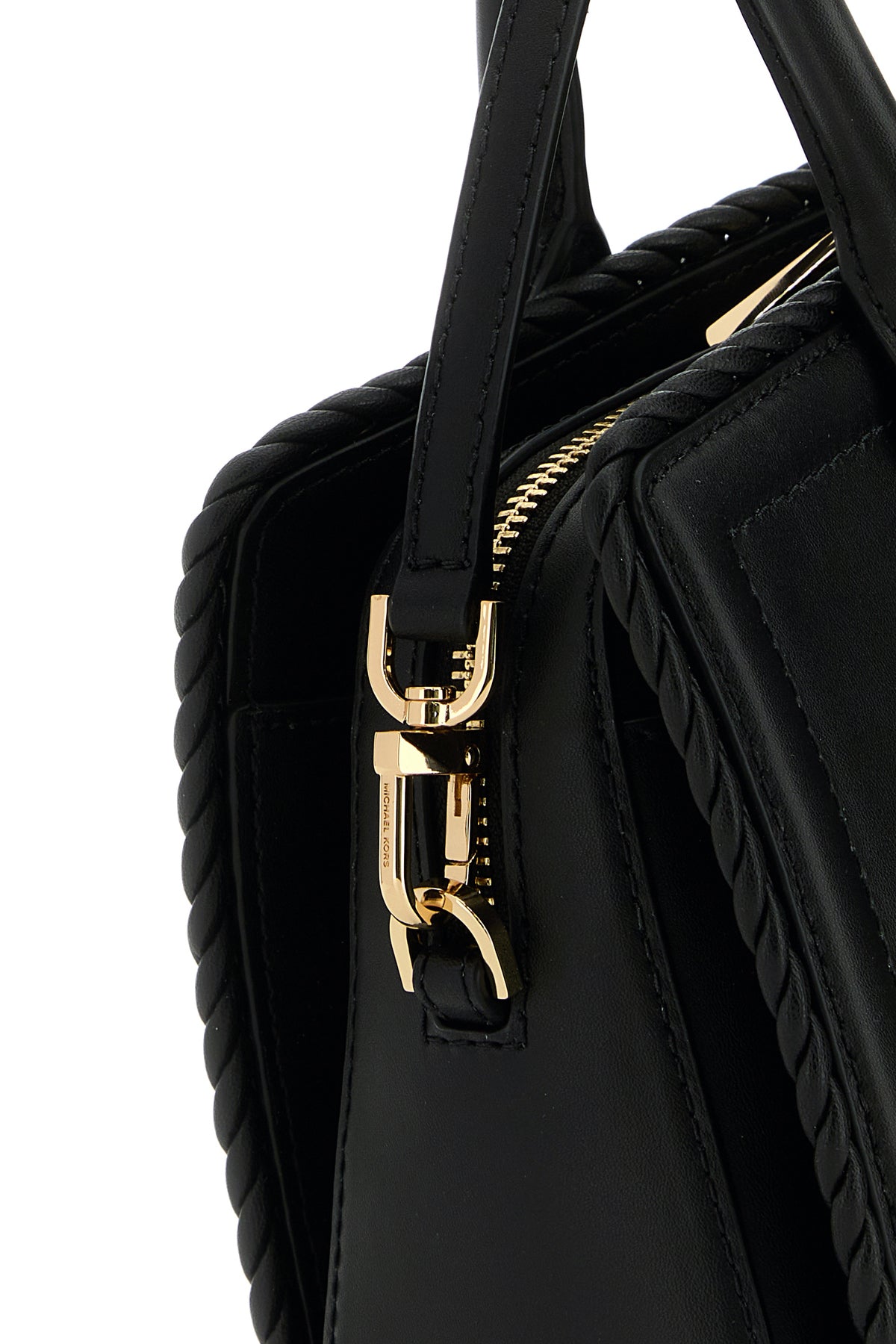 Borsa a mano realizzata in pelle liscia arricchita da logo in lettere metalliche sulla parte frontale.
