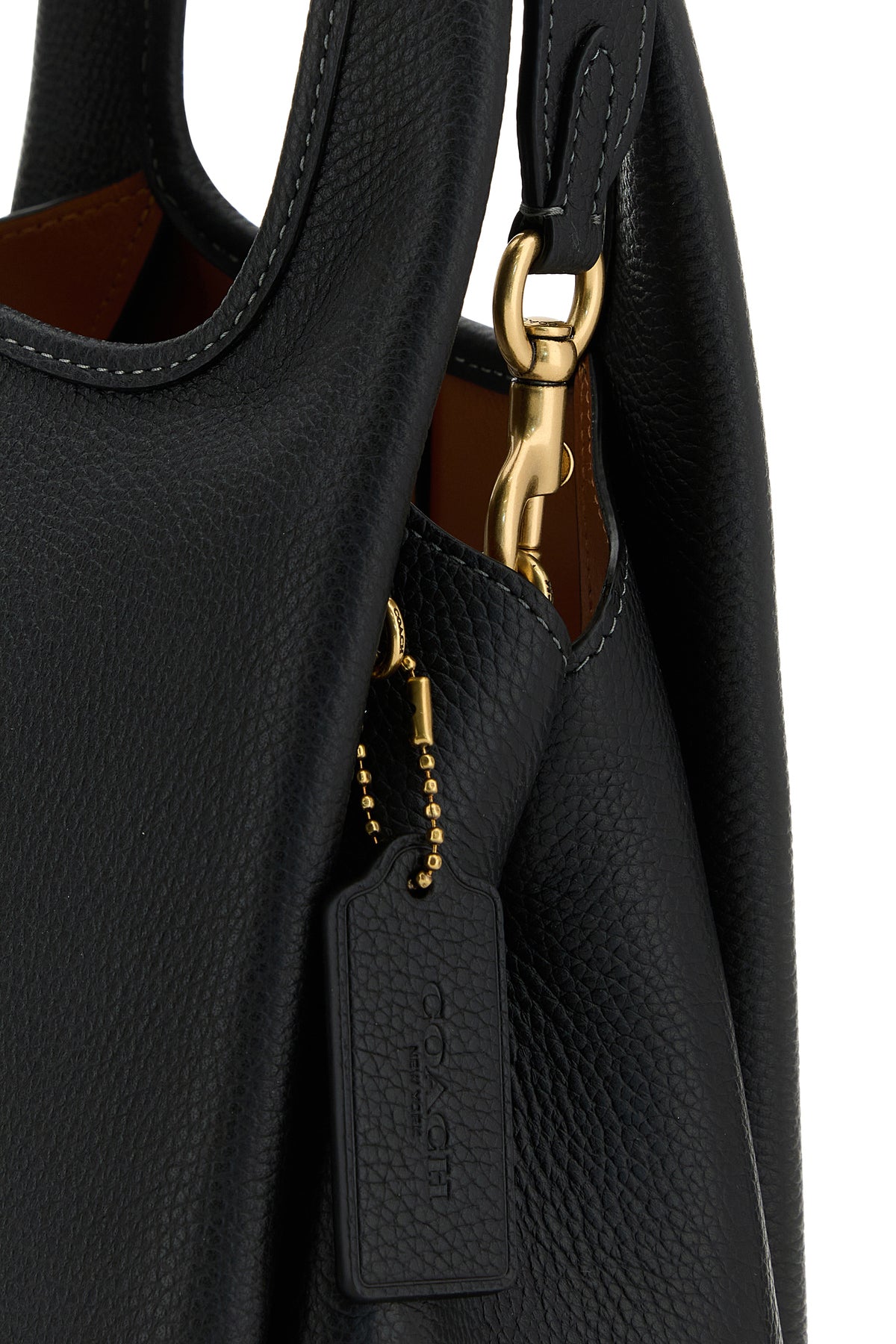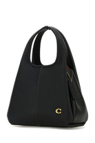 Borsa a mano realizzata in pelle martellata arricchita da dettaglio metallico logato sulla parte frontale.