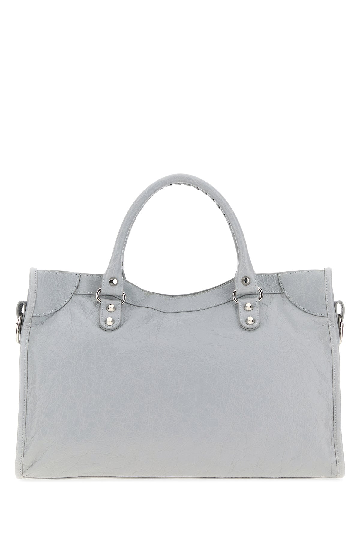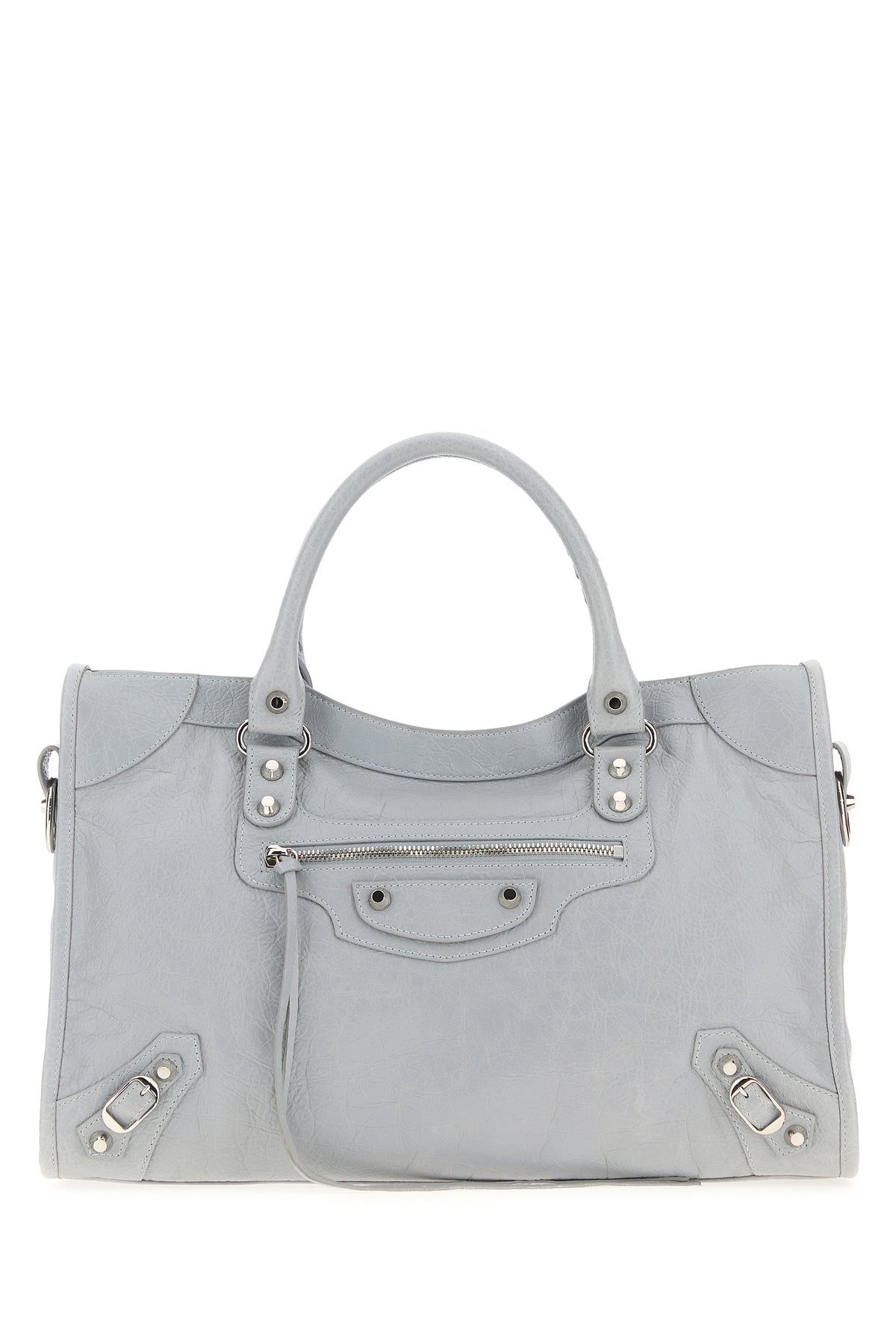 Borsa a mano realizzata in pelle di agnello Arena Storico arricchita da cinturini decorativi e borchie sulla parte frontale.