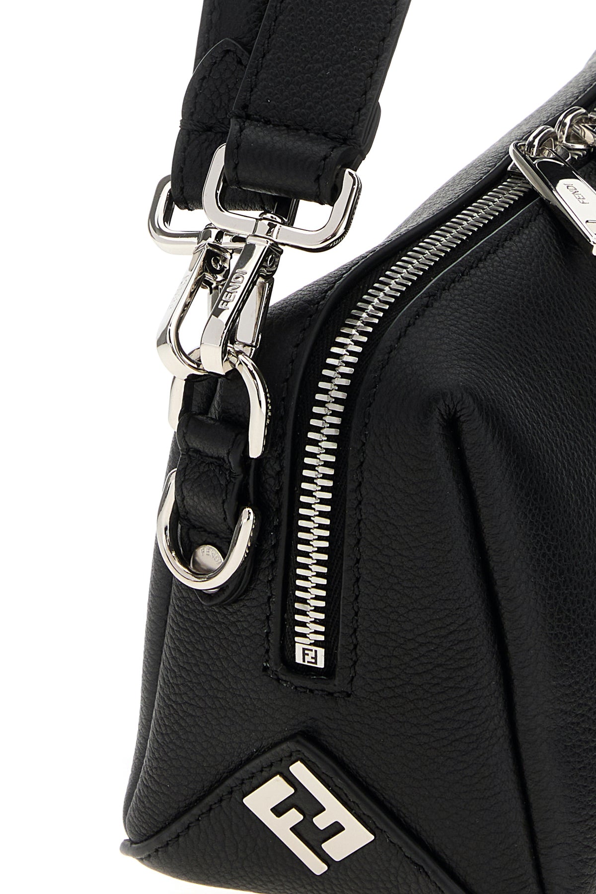 Borsa a mano realizzata in pelle di vitello martellata arricchita da dettaglio metallico FF sui lati.