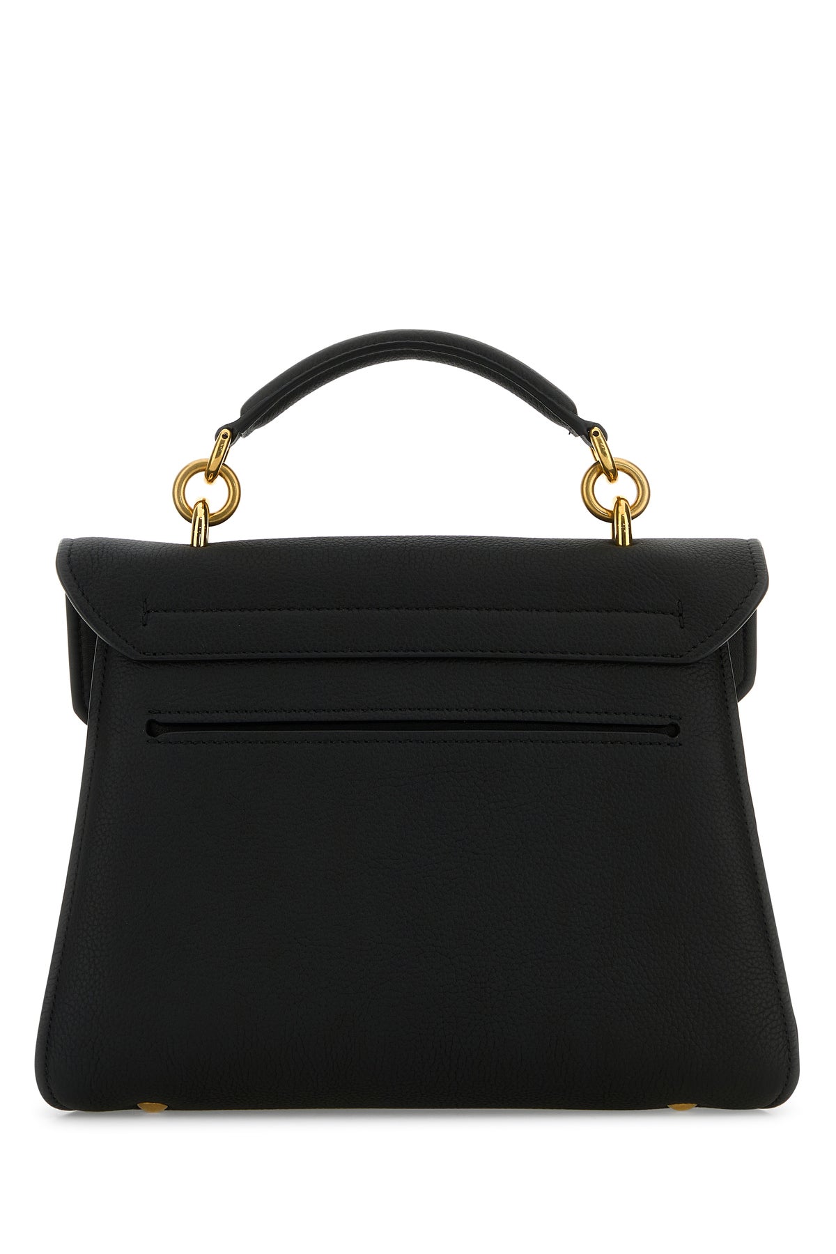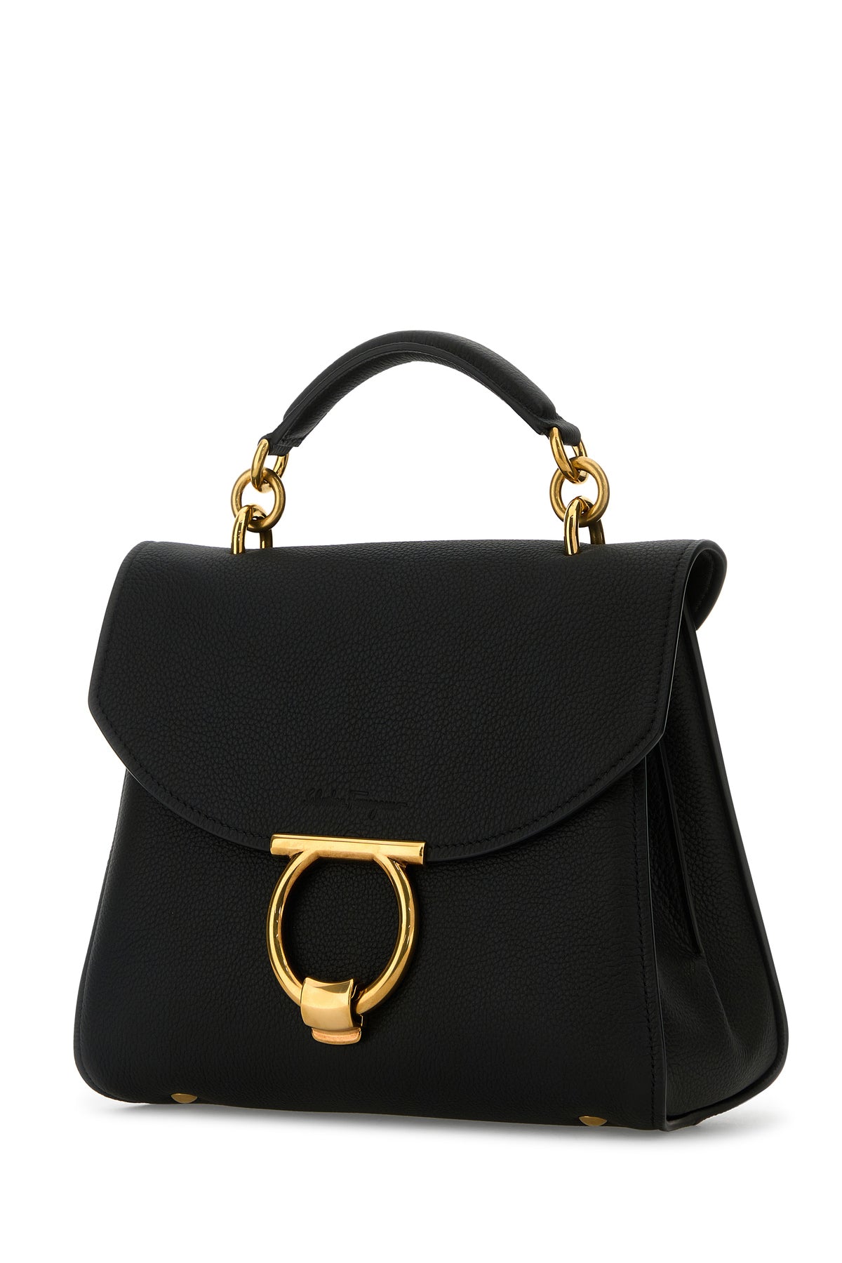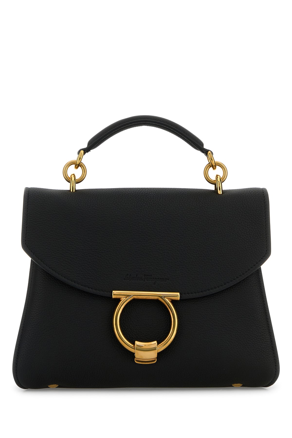 Borsa a mano realizzata in pelle di vitello martellata caratterizzata da logo impress sulla patta arricchita da dettaglio Gancini in metallo sulla parte frontale.