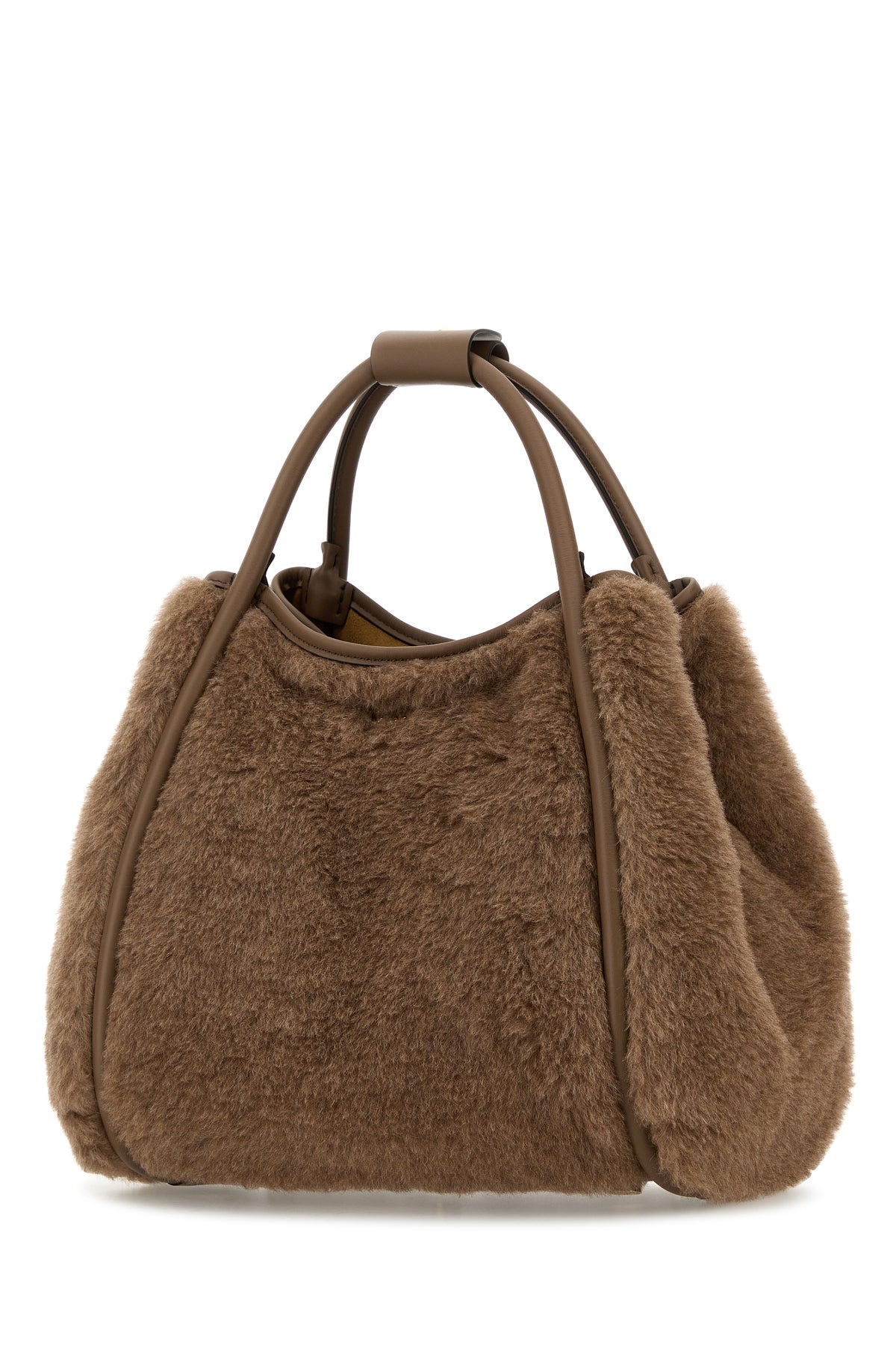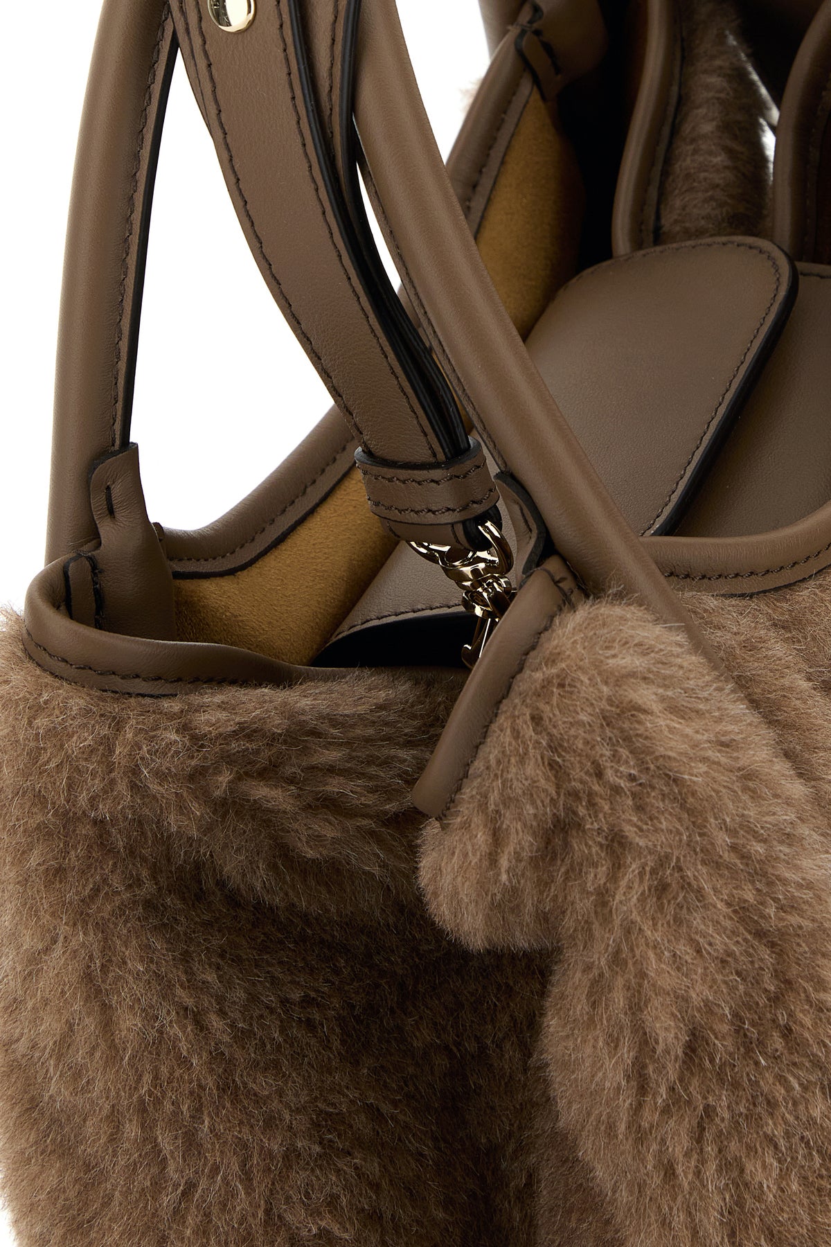 Borsa a mano realizzata in teddy arricchita da logo in lettere metalliche sulla parte frontale.