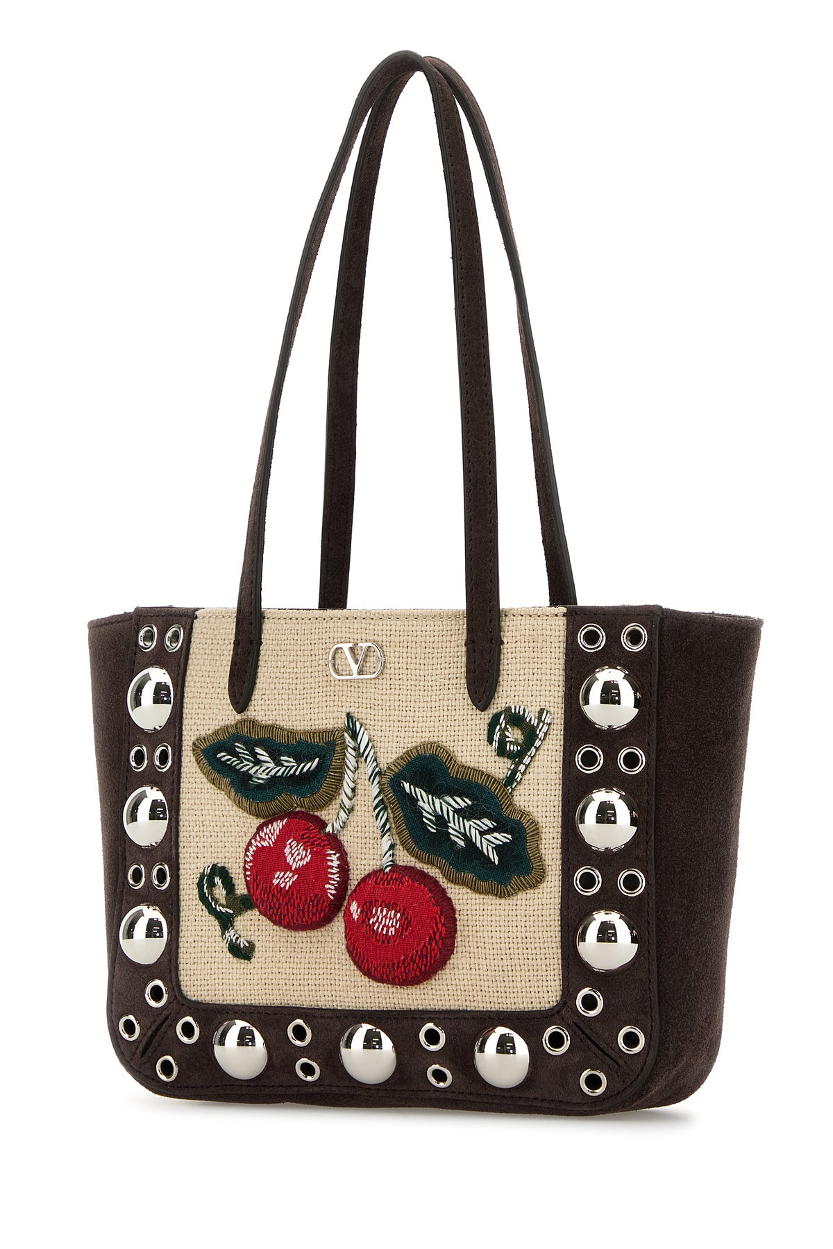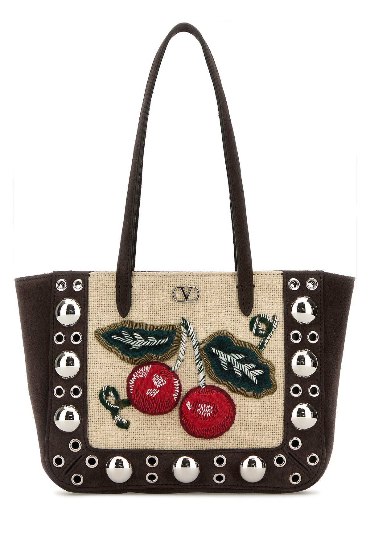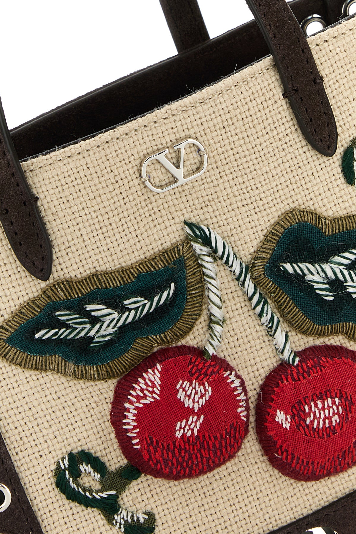 Borsa a mano realizzata in pelle scamosciata caratterizzata da ricamo Cherryfic 3D arricchita da dettaglio metallico VLogo Signature sulla parte frontale.